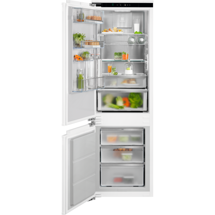 Mit der Cooling 360° Kühl-Gefrierkombination bleibt jeder Winkel kalt. - Die Innenauskleidung besteht zu 70 % aus recyceltem Kunststoff. - GreenZone+ bewahrt bis zu 95 % der Vitamine.* - Das Gefrierfach kann als Kühlschrank oder als Gefrierschrank genutzt werden. - No Frost Gefriergerät und optimale Kühlschrankfeuchte mit TwinTech® No Frost. - Die Extra Chill Schublade ist der perfekte Ort für Käse und Aufschnitt. - Steuerungsart: Elektronik Touch - Temperaturanzeige: Digital - Schnellkühlen - Schnellgefrierschalter