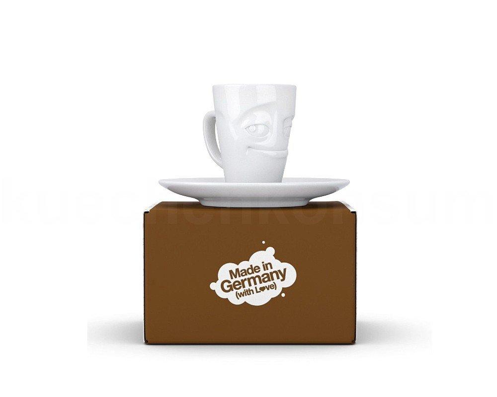 Informations sur le produit : Espresso Mug Tasse espiègle livrée dans une boîte cadeau tasse à espresso avec anse qualité hôtelière incassable pied poli, bord de bouche émaillé résiste au lave-vaisselle et au micro-ondes fabriquée en Allemagne Dimensions et détail : Motif : déconcerté Couleur : blanc Matériau : porcelaine dure contenu : 80 ml Diamètre de la tasse : env.6 cm Hauteur de la tasse : env. 7,5 cm Poids de la tasse : 130 g Diamètre de l'assiette : env. 12 cm Hauteur de l'assiette : env. 1,7 cm Poids de l'assiette : env. 110 g