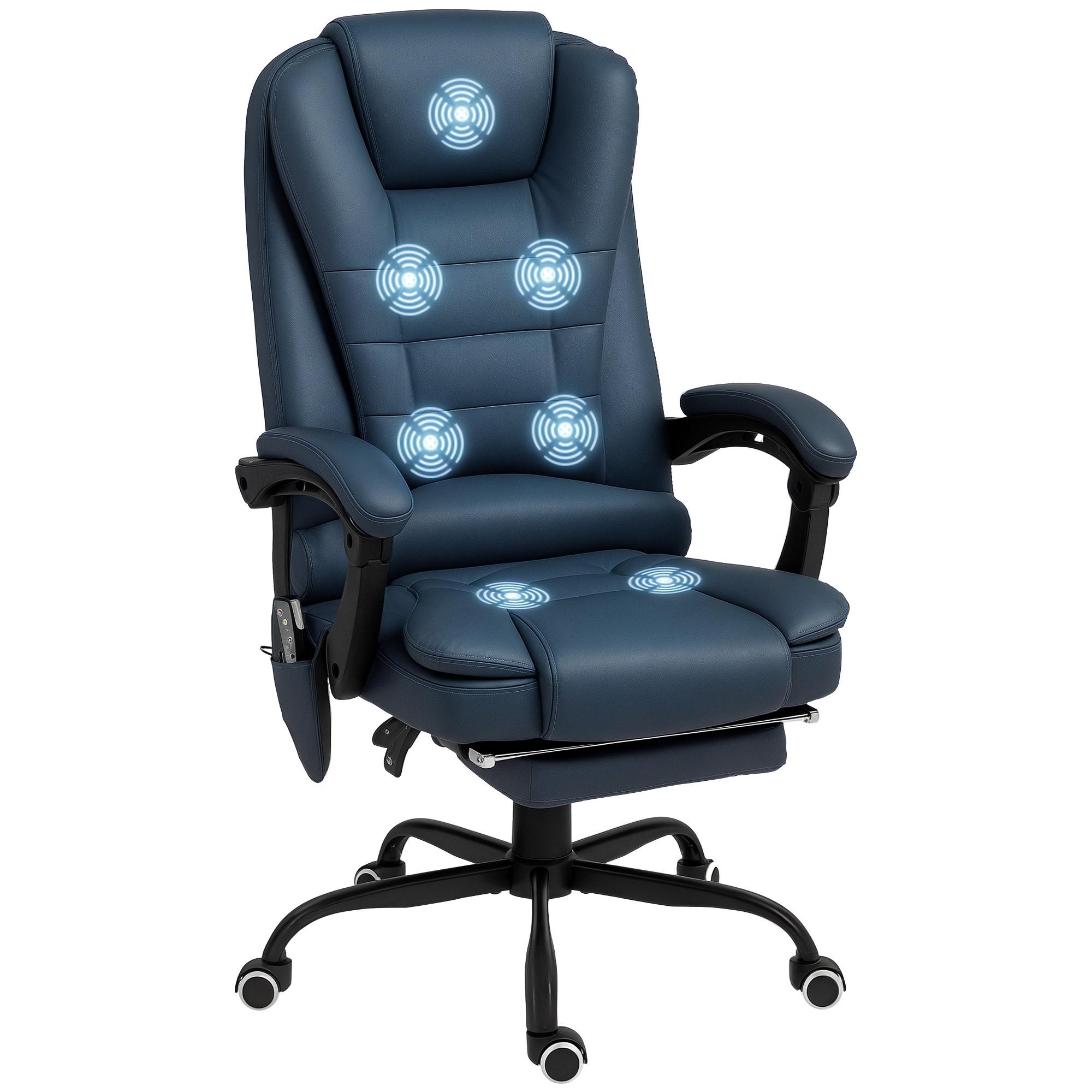 Ce fauteuil de bureau massant Vinsetto vous permet de travailler dans les meilleures conditions. Doté d'une fonction de massage à 7 points, de 5 modes, d'un dossier réglable, d'un repose-pieds rétractable, d'un coussin lombaire et d'une assise pivotante à 360° et réglable en hauteur, ce fauteuil de direction vous offre un confort inégalé ! Ce fauteuil de bureau inclinable Vinsetto est non seulement particulièrement luxueux, mais séduit également par sa fonction massage intégrée.