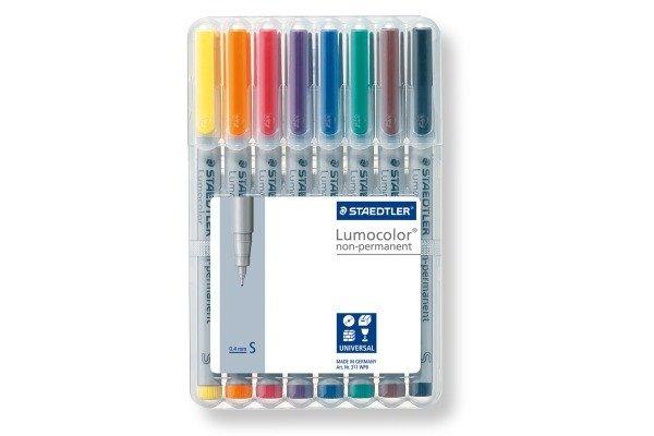 LUMOCOLOR - non-permanent Universalstift Der Universalstift für fast alle Oberflächen von STAEDTLER ist besonders für Overhead-Projektion geeignet und ist feucht abwischbar von Folien! Die non-permanente und geruchsarme Tinte trocknet sekundenschnell und ist auch für Linkshänder geeignet. Wasserlösliche Tinte Sekundenschnell trocken Feucht abwischbar von Folien Airplane safe - automatischer Druckausgleich verhindert das Auslaufen des Stiftes im Flugzeug Höchste Farbbrillanz Schaft und Kappe aus PP garantieren lange Lebensdauer Lichtbeständig