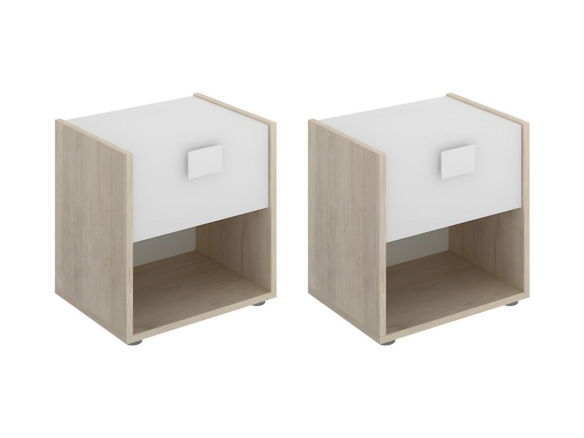 Vente-unique Lot de 2 tables de chevet 1 tiroir et 1 niche - Coloris : Naturel et blanc - SONIA