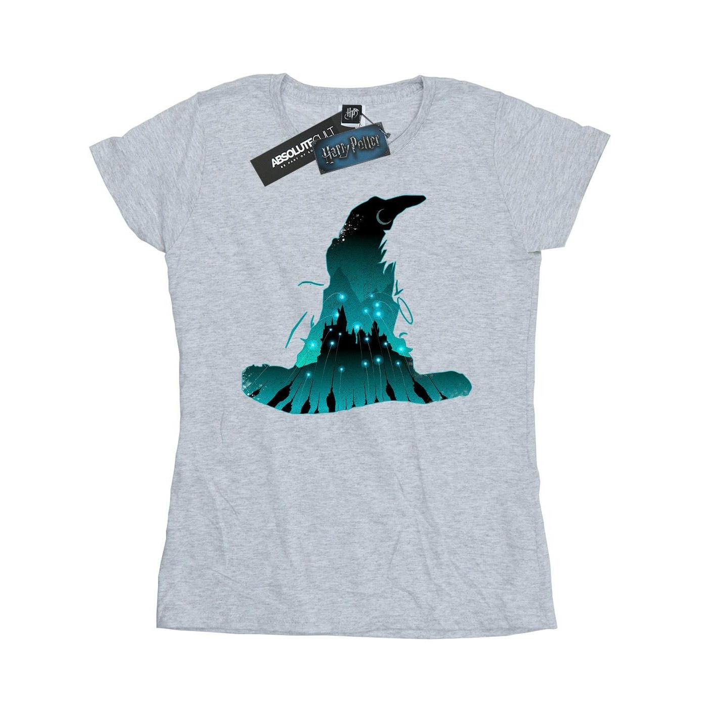 Ce T-shirt présente un graphique captivant du Choixpeau magique de Poudlard, avec le château emblématique et le ciel étoilé subtilement intégrés dans sa silhouette. C'est un choix parfait pour les fans du monde des sorciers.