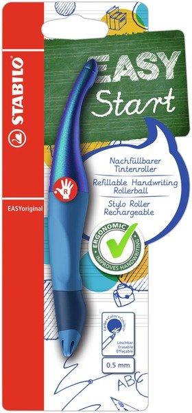 EASYORIGINAL - Holograph Tintenroller Ergonomischer Tintenroller STABILO EASYoriginal Holograph. Der Klassiker für Schreibanfänger und Schüler ab 6 Jahren. Kappenmodell. Typbezeichnung der Mine: extralange Patrone. Art der Schreibflüssigkeit: Tinte auf Wasserbasis. Ausführung Mine: Rollerballspitze aus Kunststoff mit Hartmetall, 0,5 mm, königsblau, Mine auswechselbar. Kann einige Tage offen liegen bleiben, ohne einzutrocknen. Tintenspeicher-Technik: Tamponsystem. Ausführung Stift: Kunststoffgehäuse, Griffzone aus rutschfestem Material. Für Rechtshänder, ergonomisches Design. Schaftfarbe: Holograph blau. Blisterverpackung: 1 Tintenroller STABILO EASYoriginal Holograph blau R, inkl. 1 Patrone medium (blau, löschbar). Ergonomischer Tintenroller für Rechtshänder für Schreibanfänger und Schüler ab 6 Jahren Rollerballspitze aus Kunststoff mit Hartmetall, 0,5 mm, königsblau (löschbar), Mine auswechselbar Tinte auf Wasserbasis Griffzone aus rutschfestem Material