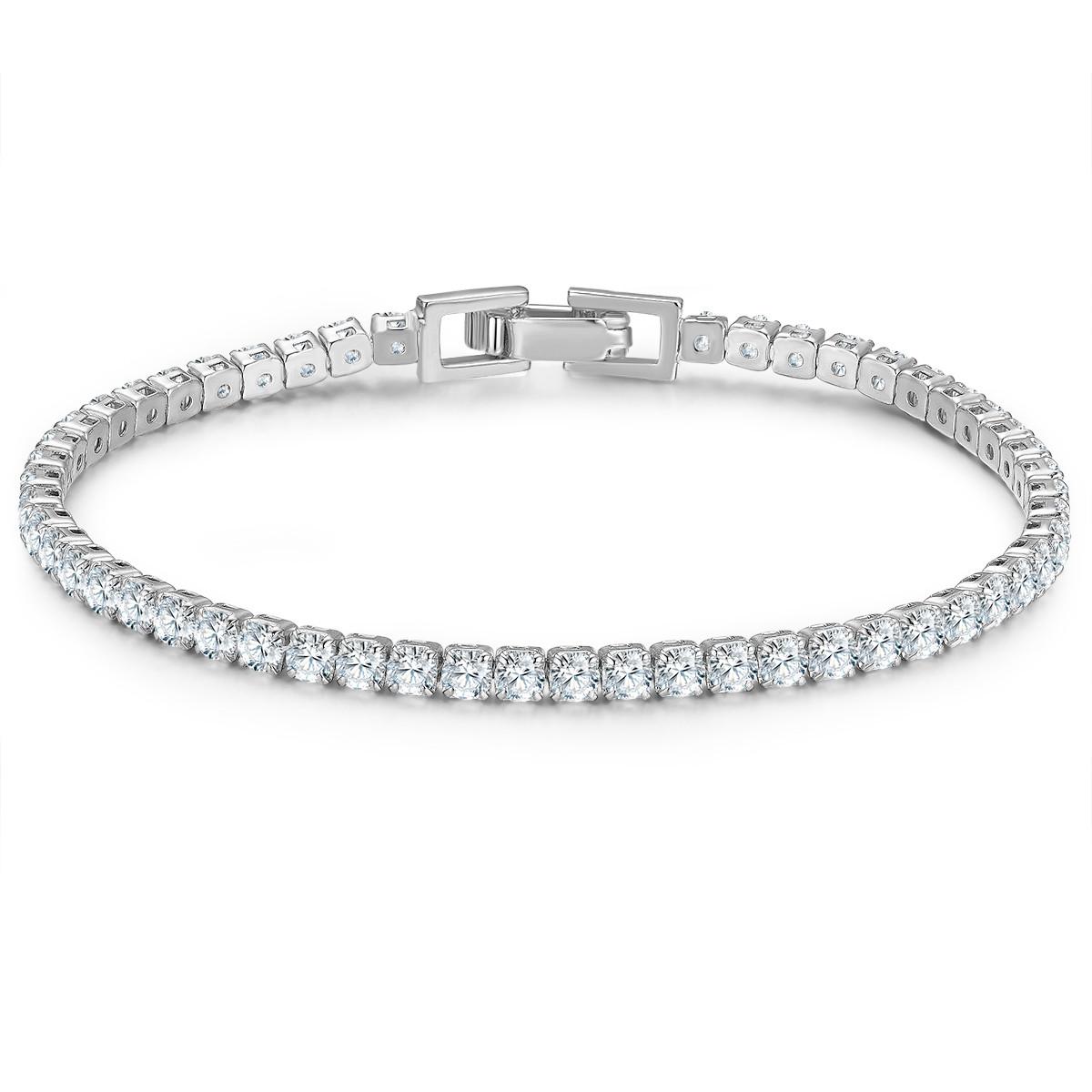 Les bracelets de tennis sont un classique qui mérite une place dans chaque boîte à bijoux. Cette création de l'étiquette Glossy Label représente également l'élégance glamour et glamour typiquement intemporelle: les cristaux de zircone à facette avec précision sont des rangées dans une bande scintillante qui flatte votre poignet et scintille comme une rivière au soleil - non sans raison, ce design est trop référé à votre comme le bracelet Rivière. Le bracelet est en argent sterling start-up en rhodium et un verrouillage pliant facile à utiliser complète la conception premium. Sport, élégant ou festif, en tant que soliste ou combiné avec votre horloge préférée: vous ne voudrez plus prendre ce bracelet!