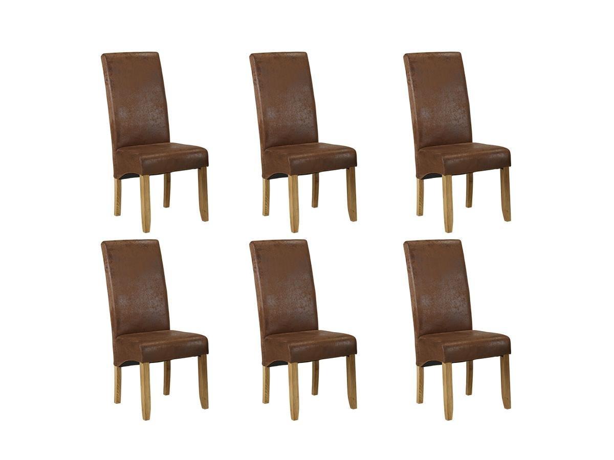 Vente-unique, Lot de 6 chaises SANTOS Microfibre aspect cuir vieilli Pieds bois clair