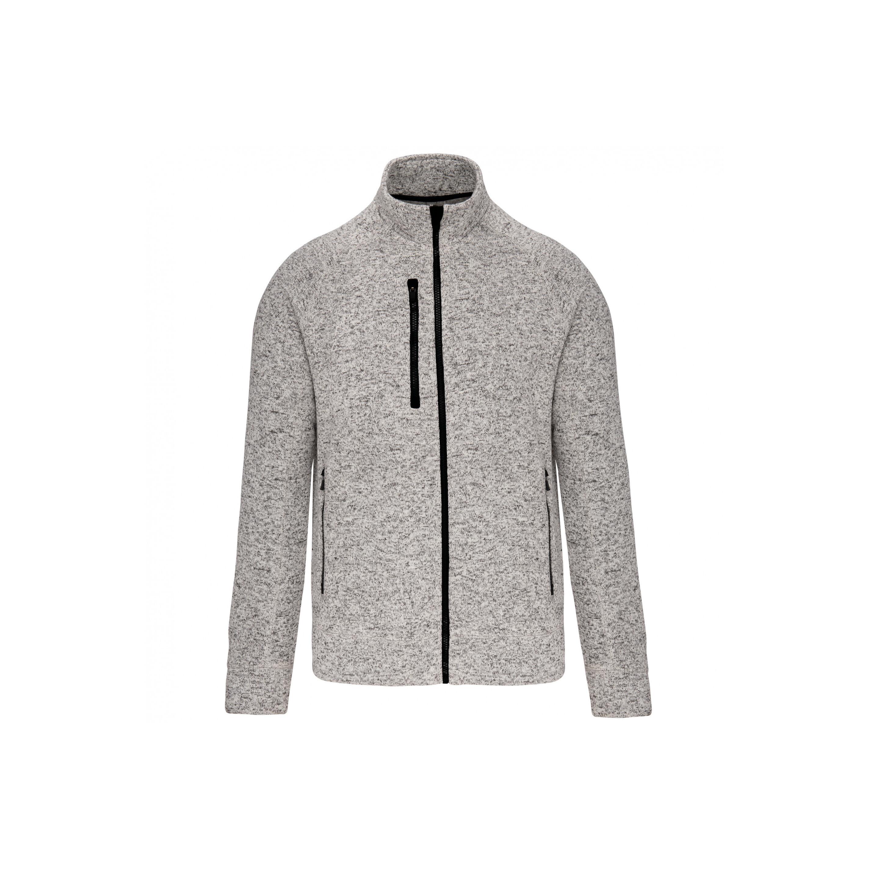 Cette veste chinée est dotée d'une fermeture éclair intégrale, offrant une option de superposition polyvalente et confortable. Le tricot gratté à l'intérieur procure douceur et chaleur. Les manches raglan assurent confort et une allure sportive.