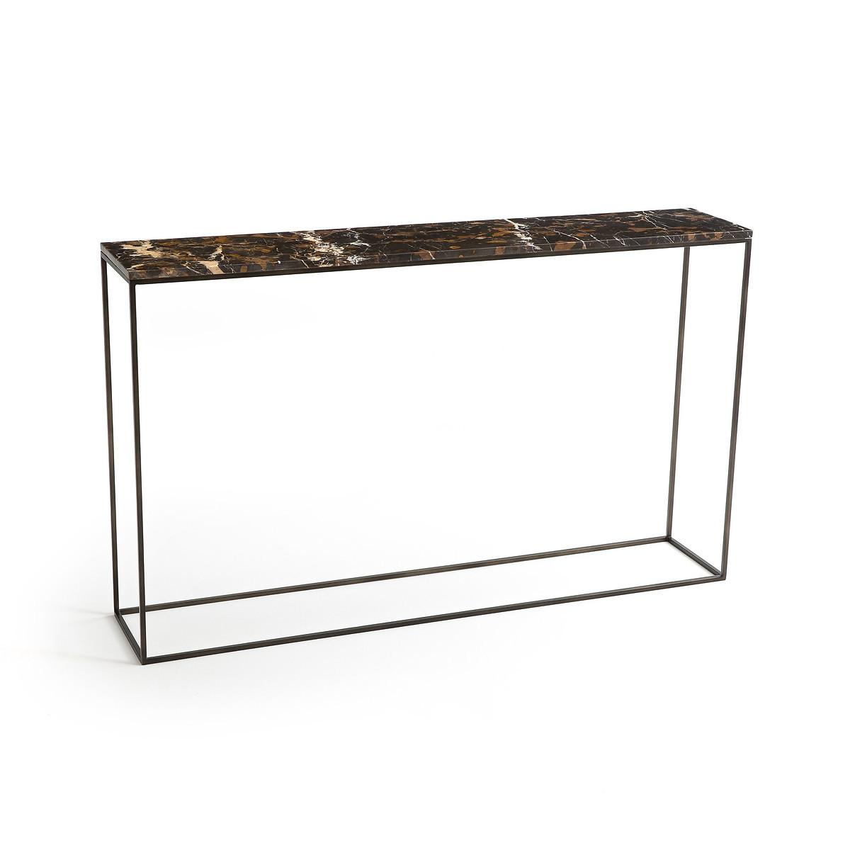 La console Ambrette. Alliance réussie d’un plateau en marbre ambré sur une structure en métal used. Décorative et utilitaire, cette console fine et étroite trouvera facilement sa place dans votre intérieur.