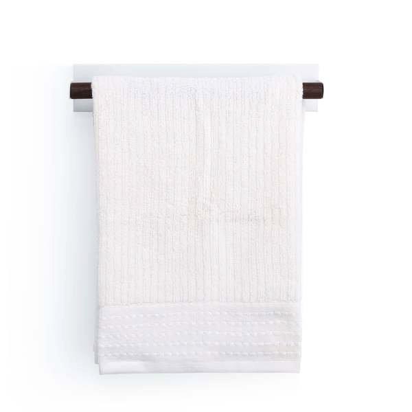 Le porte-serviettes Forster Home est fabriqué en bois de chêne ou de noyer certifié FSC et en acier inoxydable peint par poudrage.