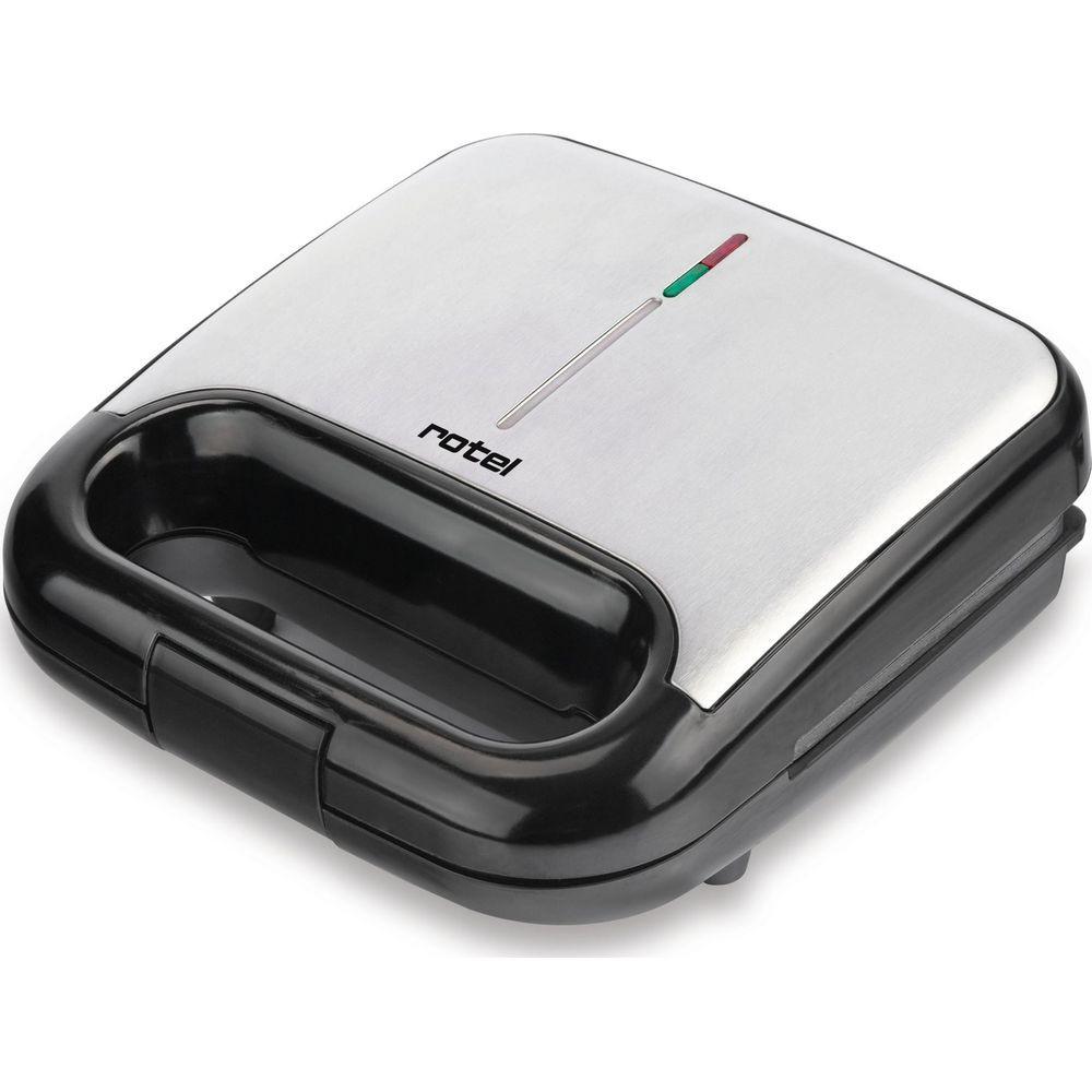 Grille-sandwich avec 3 plaques interchangeables pour la préparation de sandwichs, gaufres ou divers snacks grillés, les bords des sandwichs sont soudés pour que la garniture ne puisse pas sécouler, toutes les plaques sont anti-adhésives et faciles à nettoyer, avec deux lampes de contrôle