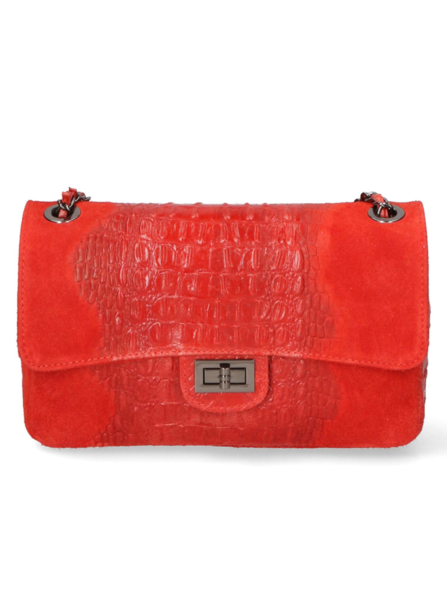 Sac à bandoulière double compartiment pour femme avec chaîne et bandoulière coulissante en cuir. Produit artisanal italien en cuir suédé véritable avec imprimé crocodile. Fabriqué en Italie