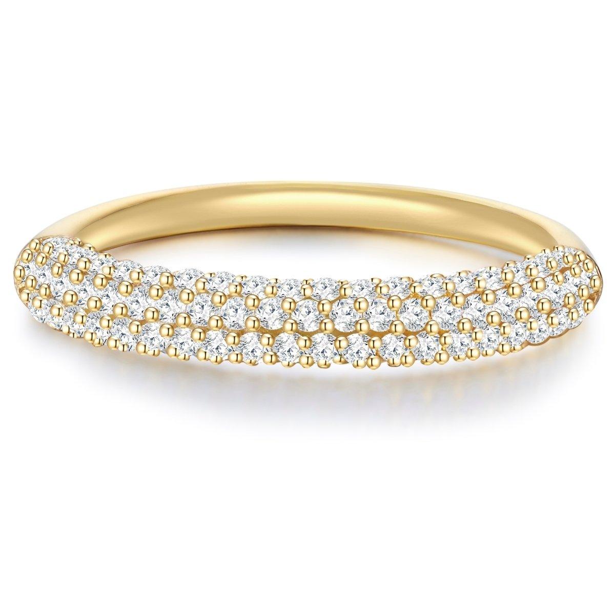 Si vous préférez les bijoux glamour, cet anneau de l'étiquette Gemebünen München vous rendra certainement heureux! Le flatteur fascine avec une attelle d'anneau en argent sterling 925, à moitié montée de cristaux de zircone scintillant dans des versions pavés à partir de petits pièges en forme de perles. La domination jaune assure le scintillement chaud typique de la nuance d'or populaire. Astuce: L'anneau est le mieux utilisé en solo, mais peut également être combiné en tant que porte-œil dans l'empilement avec des anneaux de bande simples et étroits - toujours un accent élégant qui améliore chaque tenue et s'adapte à une grande variété d'apparence.