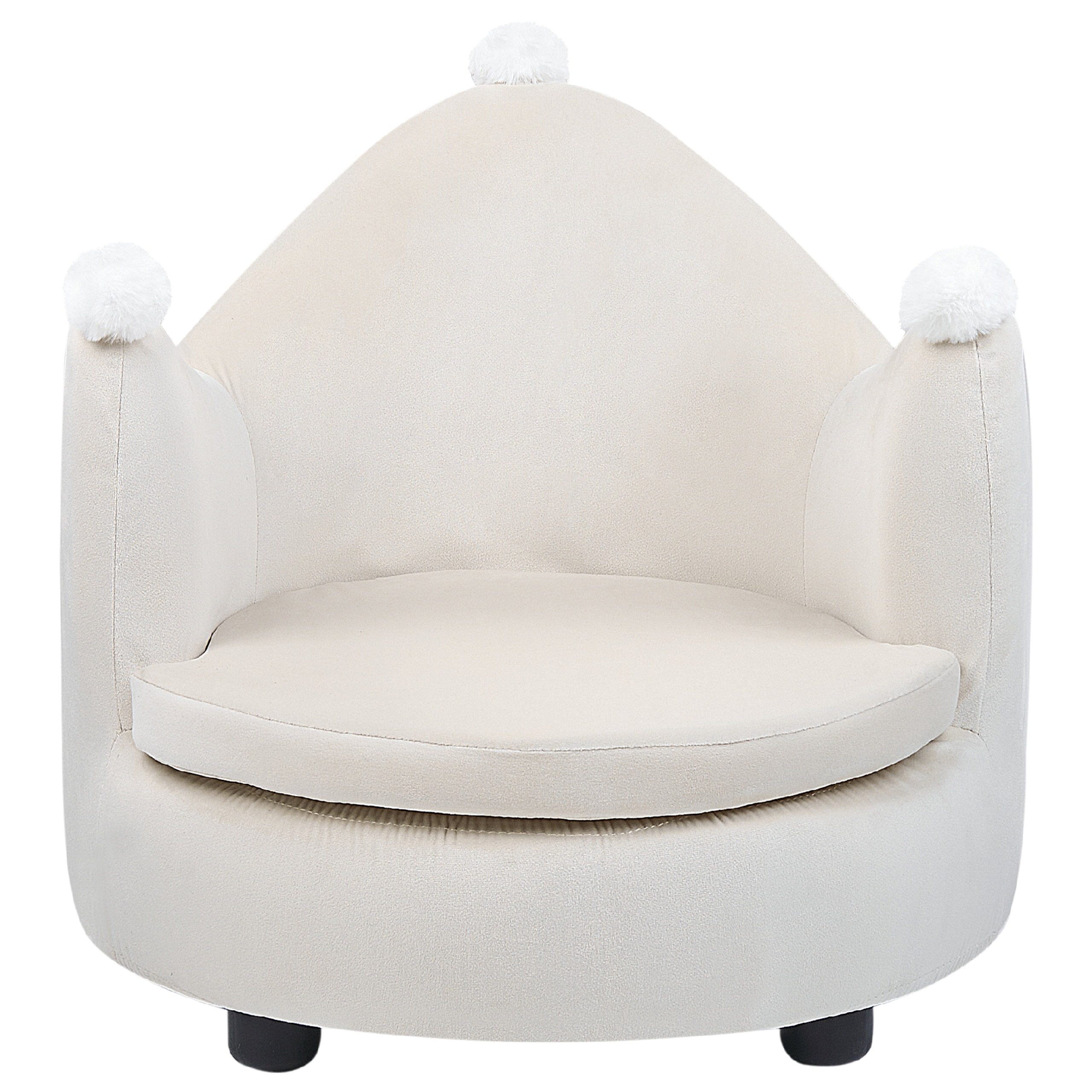 fauteuil de forme fantaisiste. Faites en sorte que votre enfant se sente comme un roi lorsqu'il s'assoit sur ce fauteuil en forme de couronne. Fabriqué en velours doux, agréable au toucher et robuste, ce fauteuil est l'endroit idéal pour regarder des dessins animés ou s'amuser avec ses jouets préférés. Le fauteuil est orné de pompons décoratifs sur le dossier, ce qui ne manquera pas d'attirer l'attention. Sa teinte beige polyvalente s'accorde avec un large éventail de décors de chambres d'enfants et de salles de jeux.