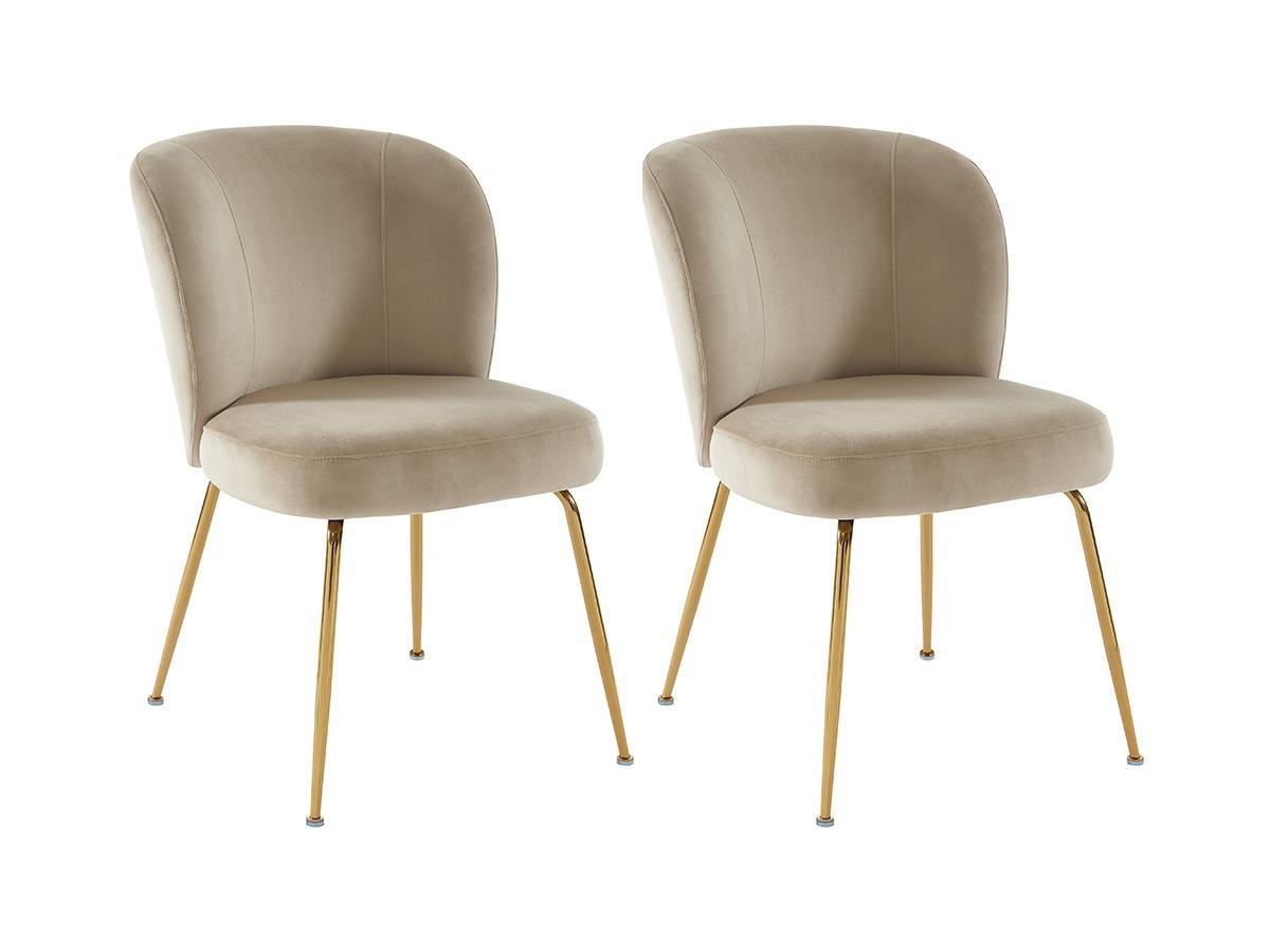Vente-unique, Lot de 2 chaises en velours et métal doré - Beige - POLPONA