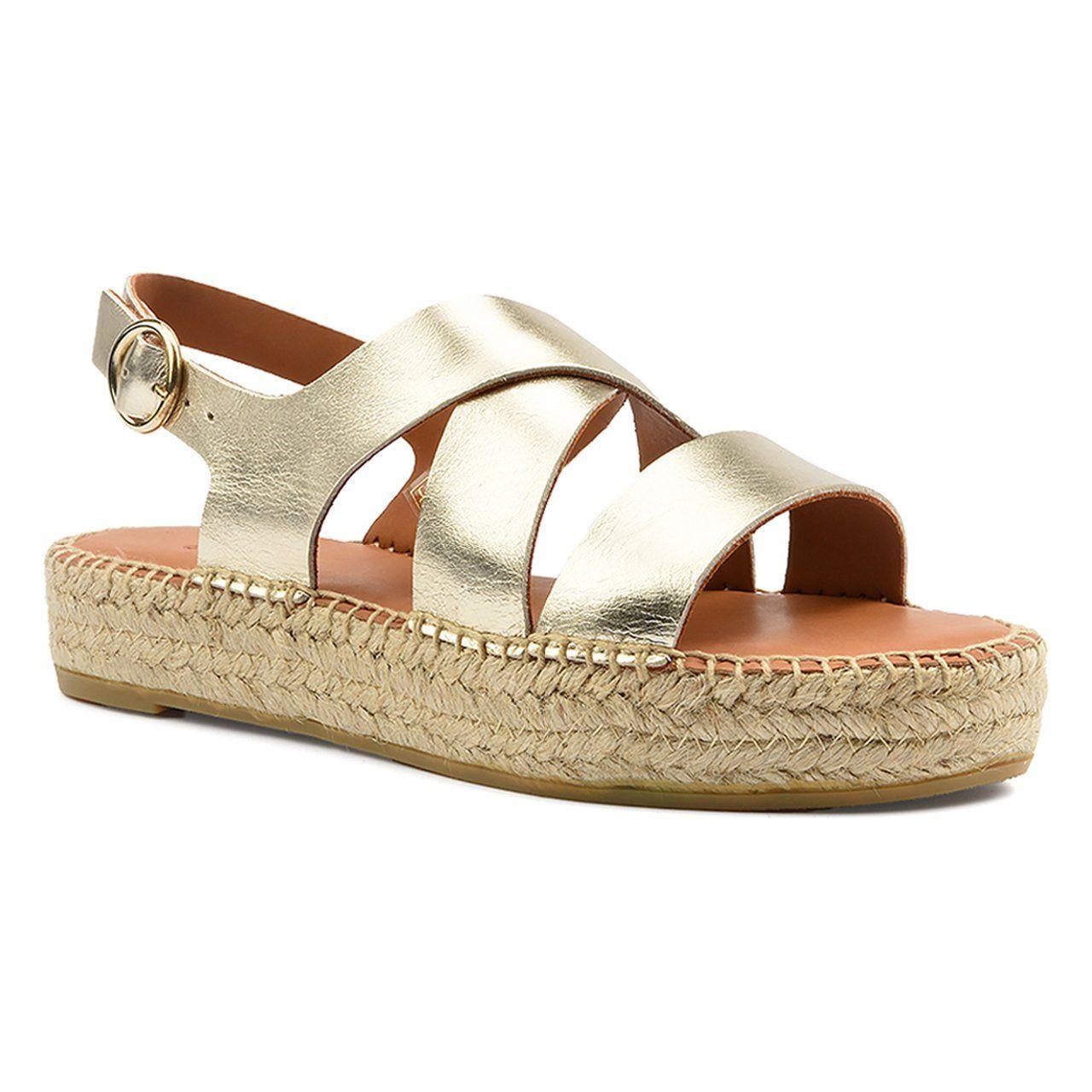 Ces sandales sont parfaites pour des sorties à la plage, des vacances ou un port quotidien. Les multiples sangles sur le dessus du pied et la boucle ajustable sur le côté permettent d'assurer une fixation confortable autour de l'articulation du pied. Les sandales Chantal sont disponibles en or, une couleur qui ajoute une touche de sophistication à tout look estival.