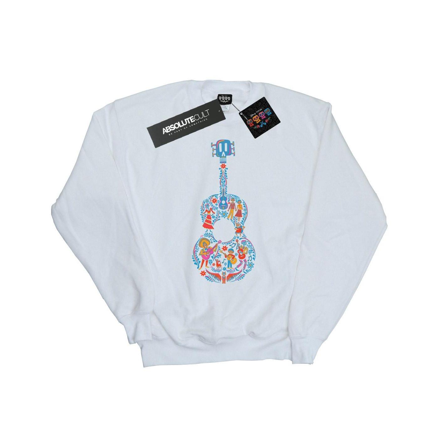 Ce sweatshirt Coco présente un imprimé graphique vibrant d'une guitare, finement conçu avec des motifs colorés et des personnages inspirés du film. Le col rond classique et les manches longues en font un choix confortable et élégant pour un usage quotidien.