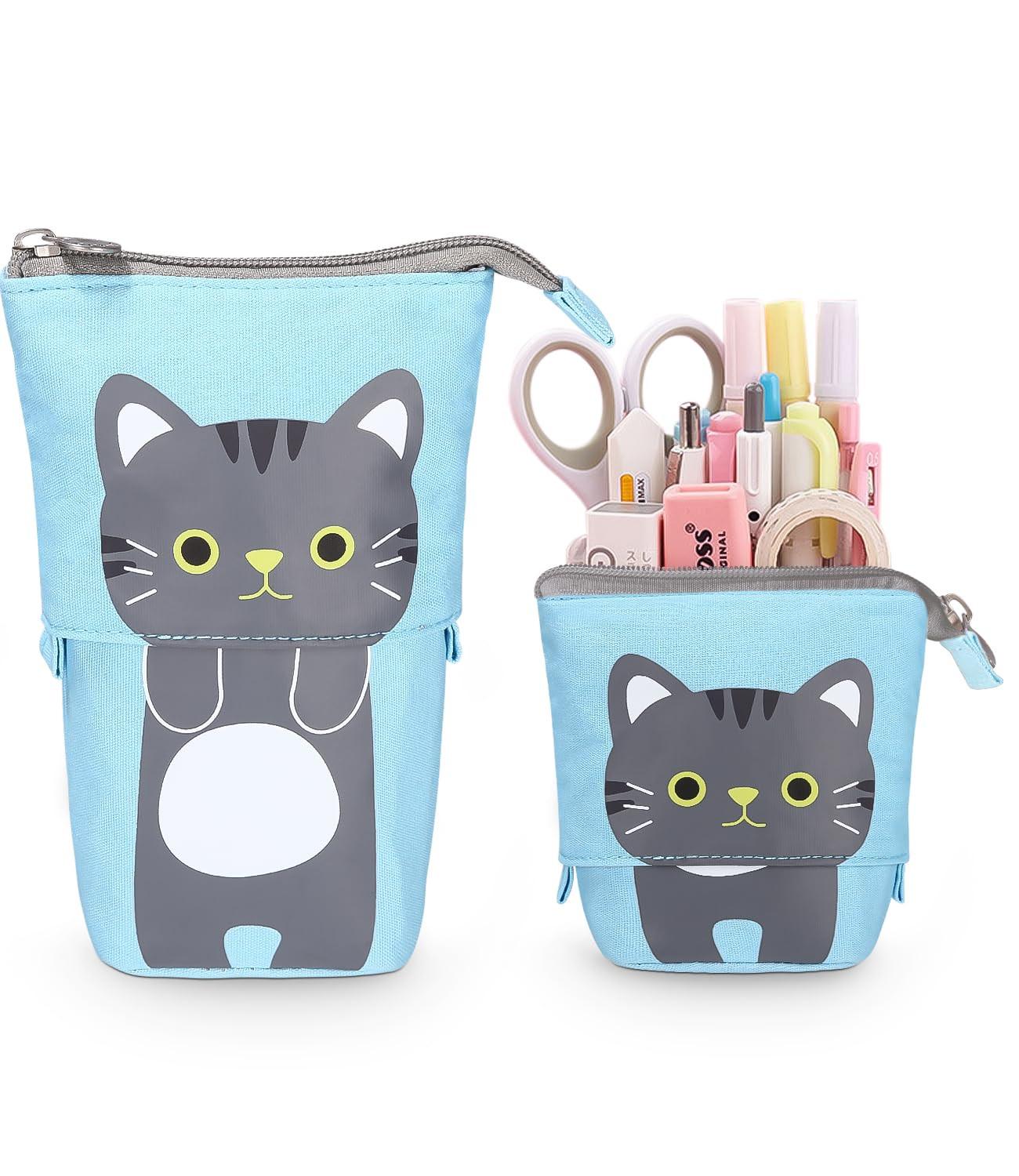 Grâce à sa conception télescopique unique, vous pouvez ajuster la hauteur de la trousse en la tirant vers le haut ou vers le bas. Grâce à sa base renforcée et à sa hauteur réglable, il est possible de passer de la trousse au porte-stylos à volonté. Parfaite pour une utilisation à la maison, à l'école ou en déplacement. La trousse au design particulier se glisse dans n'importe quel sac et offre suffisamment d'espace pour ranger et organiser vos affaires. En même temps, elle est très légère et idéale pour être emportée avec soi. Elle est parfaite pour les étudiants, les artistes et tous ceux qui aiment les jolis articles de papeterie. La trousse à crayons Shake est fabriquée en toile de haute qualité, agréable au toucher, facile à nettoyer et durable. La fermeture à glissière en métal est à la fois élégante et pratique et peut être fermée facilement et en douceur. Grâce à sa conception 2 en 1, elle peut être utilisée à la fois comme trousse et comme porte-stylo. Il peut également servir de sac d'artiste, de sac de fournitures de bureau, de porte-pinceau de maquillage, etc. Il convient aux filles, aux garçons, aux adolescents, aux adultes et aux femmes. Notre sac slob est conçu avec un design de dessin animé mignon, ce qui en fait un véritable accroche-regard et adoucit votre vie. C'est le cadeau idéal pour les adolescents et les étudiants qui recherchent une trousse à crayons unique et élégante. Les filles et les garçons, ainsi que les adultes, adoreront ce modèle. Taille-13.0 x 17.0 x 7.5 cm