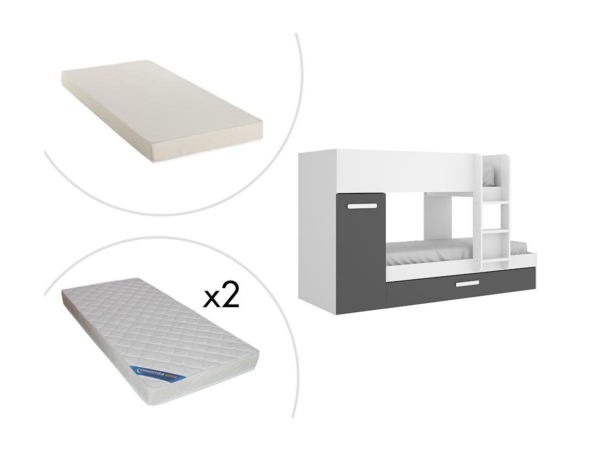 Vente-unique, Lits Superposés ANTHONY avec rangements 3 + matelas