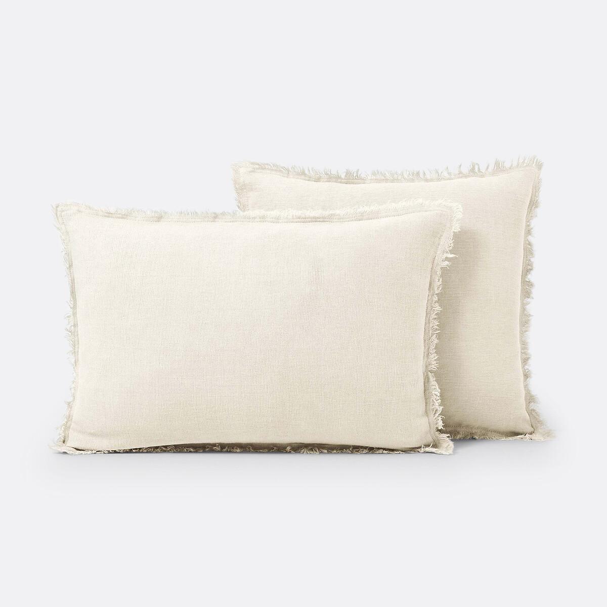 La housse de coussin Linange est confectionnée en lin lavé, offrant une texture douce et accueillante. Son design avec des bords effilochés ajoute une touche d'élégance décontractée à tout espace de vie.