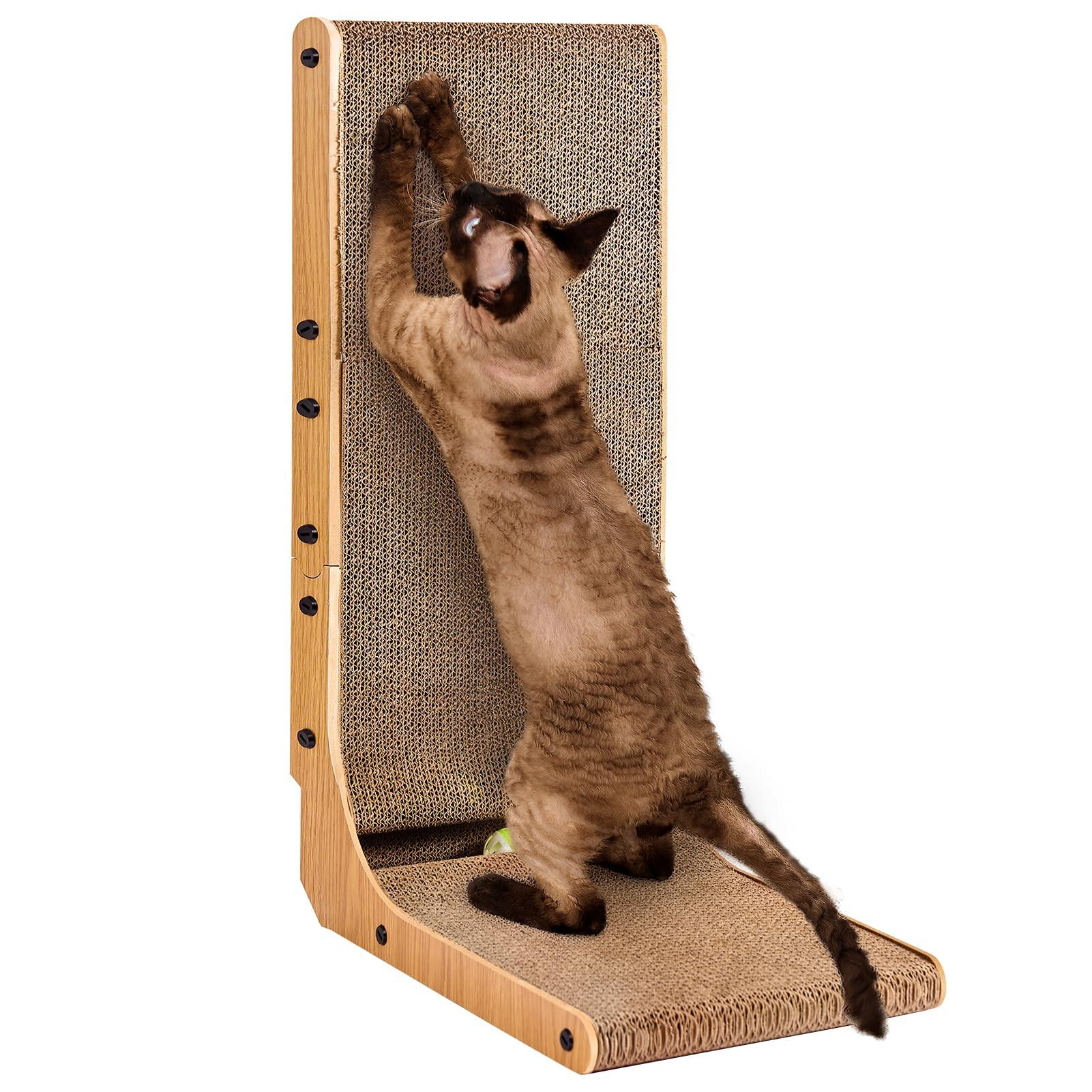 MATÉRIAUX DE HAUTE QUALITÉ La surface de la planche à gratter pour chat est faite de carton ondulé non toxique et à haute densité, suffisamment durable pour résister aux égratignures du chat. Design innovant: nos meubles à gratter pour chats domestiques ont un design en forme de L qui protège vos meubles. La planche à gratter en forme de L offre plus de surface de grattage pour que les chats puissent se gratter dans diverses positions. Multifonctionnel à utiliser: les chats peuvent se détendre et s'étirer sur notre planche à gratter. Notre planche à gratter est également proposée avec une balle de jeu avec laquelle jouer. Il offre un environnement sûr et confortable pour les chats. Plusieurs tailles: nous proposons trois tailles de planches à gratter pour chats parmi lesquelles vous pouvez choisir. La plus petite taille est spécialement conçue pour les chatons. Peu importe la taille de votre chat, il peut se gratter et jouer à votre guise! INSTALLATION FACILE Notre planche à gratter pour chat est facile à installer et contient des instructions et les outils nécessaires. Nous fournissons également une vidéo d'installation afin que vous puissiez l'installer rapidement et facilement.