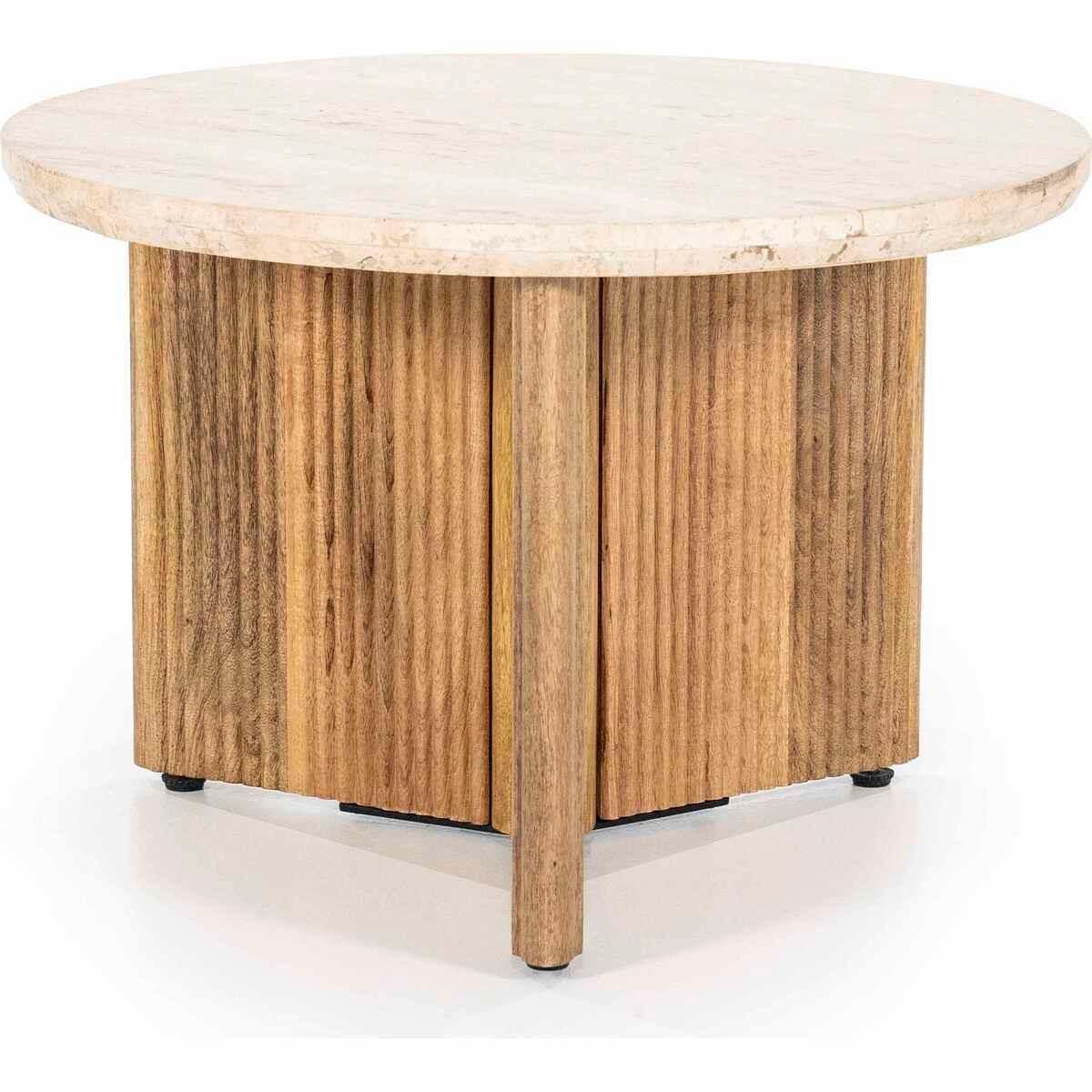 Table d'appoint en bois de manguier et travertin, couleur beige/naturelle, dimensions 60x60x40cm