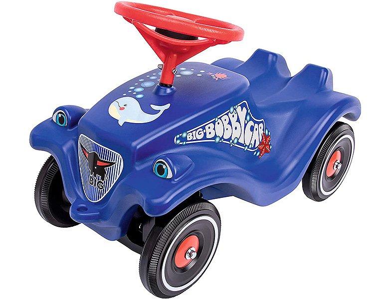 Das Bobby Car Classic Ocean strahlt in leuchtendem Tiefseeblau mit bunten Motiven. Es ist ideal für kleine Abenteurer und fördert die motorischen Fähigkeiten. Die ergonomische Form und das griffige Lenkrad mit mechanischer Hupe sorgen für sicheren Fahrspass. Die vier robusten Kunststoffräder und die stufenlose Achsschenkellenkung bieten optimale Manövrierfähigkeit.