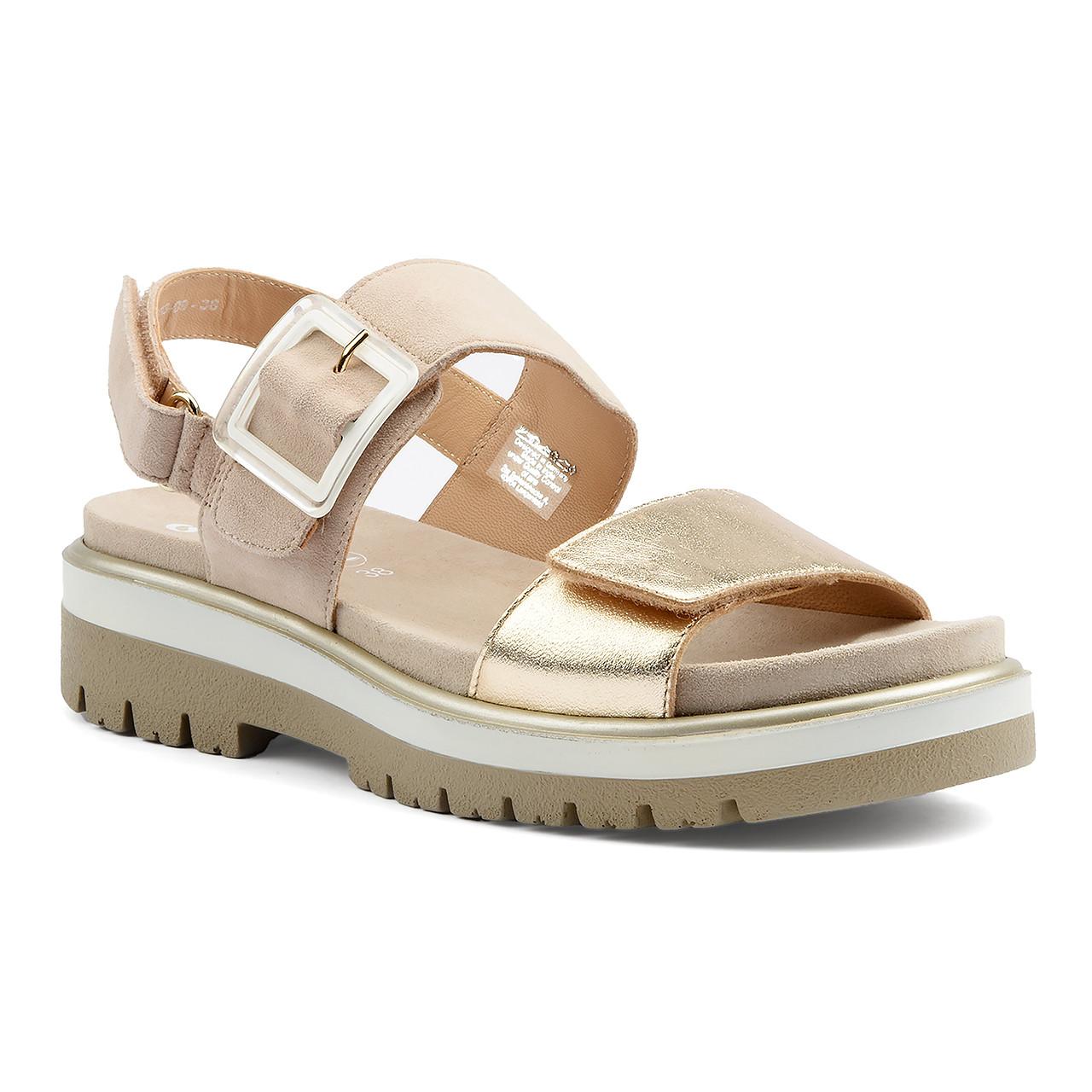 Les sandales MALAGA-S sont conçues pour un confort de marche accru et un style moderne. Ces sandales plates en cuir velours offrent une légèreté et une respirabilité optimales pour les journées estivales. Le cuir métallisé qui recouvre la partie supérieure des pieds ajoute une touche de sophistication et de modernité. La doublure en cuir assure une douceur et une protection supplémentaires pour les pieds. La semelle intérieure en cuir velours est amovible pour une meilleure adaptabilité. La semelle en synthétique est épaisse et composée de plusieurs couches, dont une couche de caoutchouc beige pour une meilleure prise au sol. La hauteur du talon est de 40 mm.