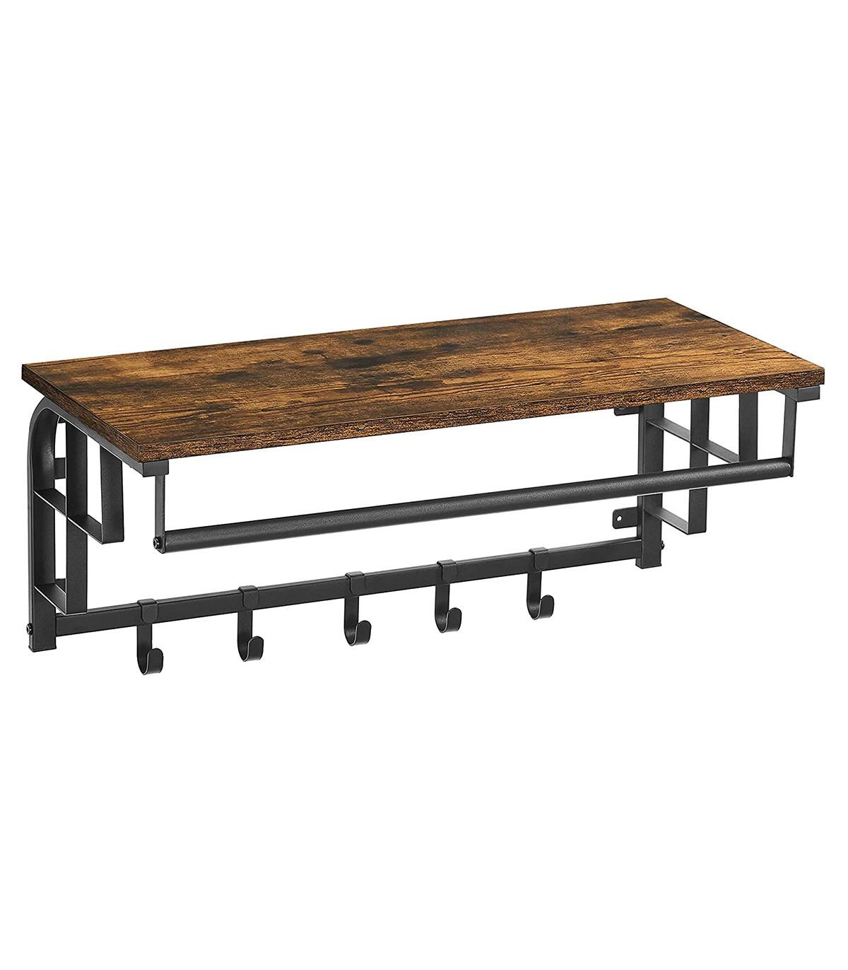 Songmics Porte-manteau mural avec 5 crochets amovibles et tringle - L66 cm