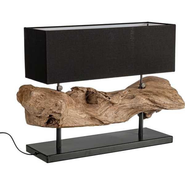 Lampe à poser Kleta en bois recyclé, coton et acier, couleur noir, 75 x 25 x 55 cm