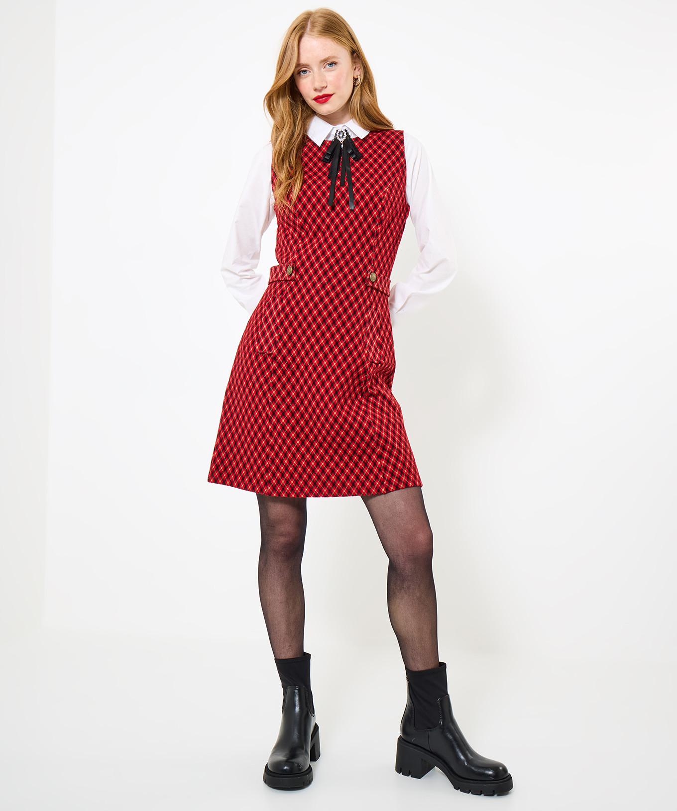 Cette robe chasuble courte offre un style remarquable à chaque fois. Son design sans manches la rend polyvalente pour être portée par-dessus divers hauts, des t-shirts simples aux chemisiers élégants.