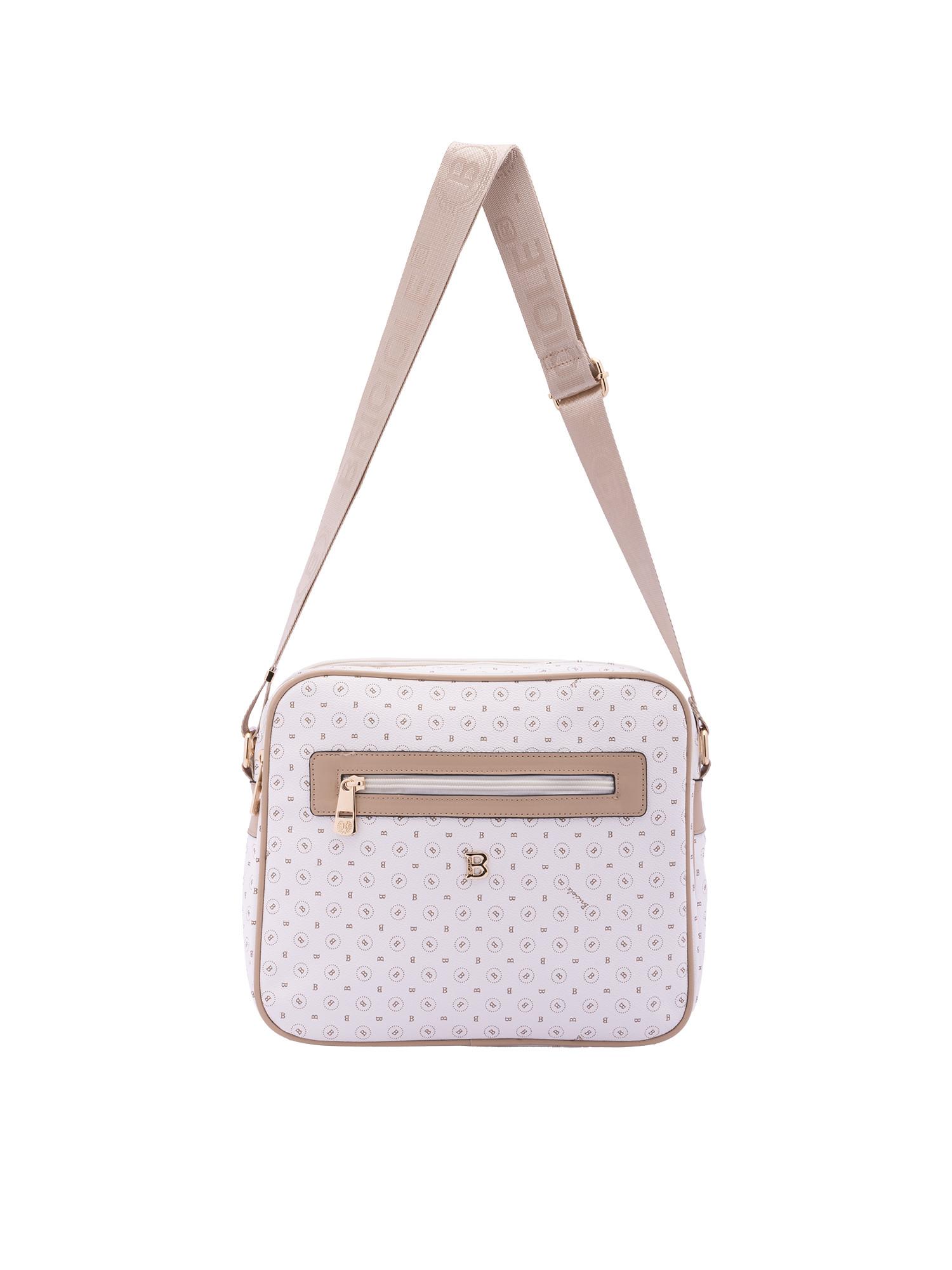 Ce sac à bandoulière arbore un motif intégral distinctif et un logo 'B' proéminent sur le devant, ajoutant une touche de sophistication à toute tenue. Le sac est conçu pour être pratique, offrant amplement d'espace pour les essentiels quotidiens.