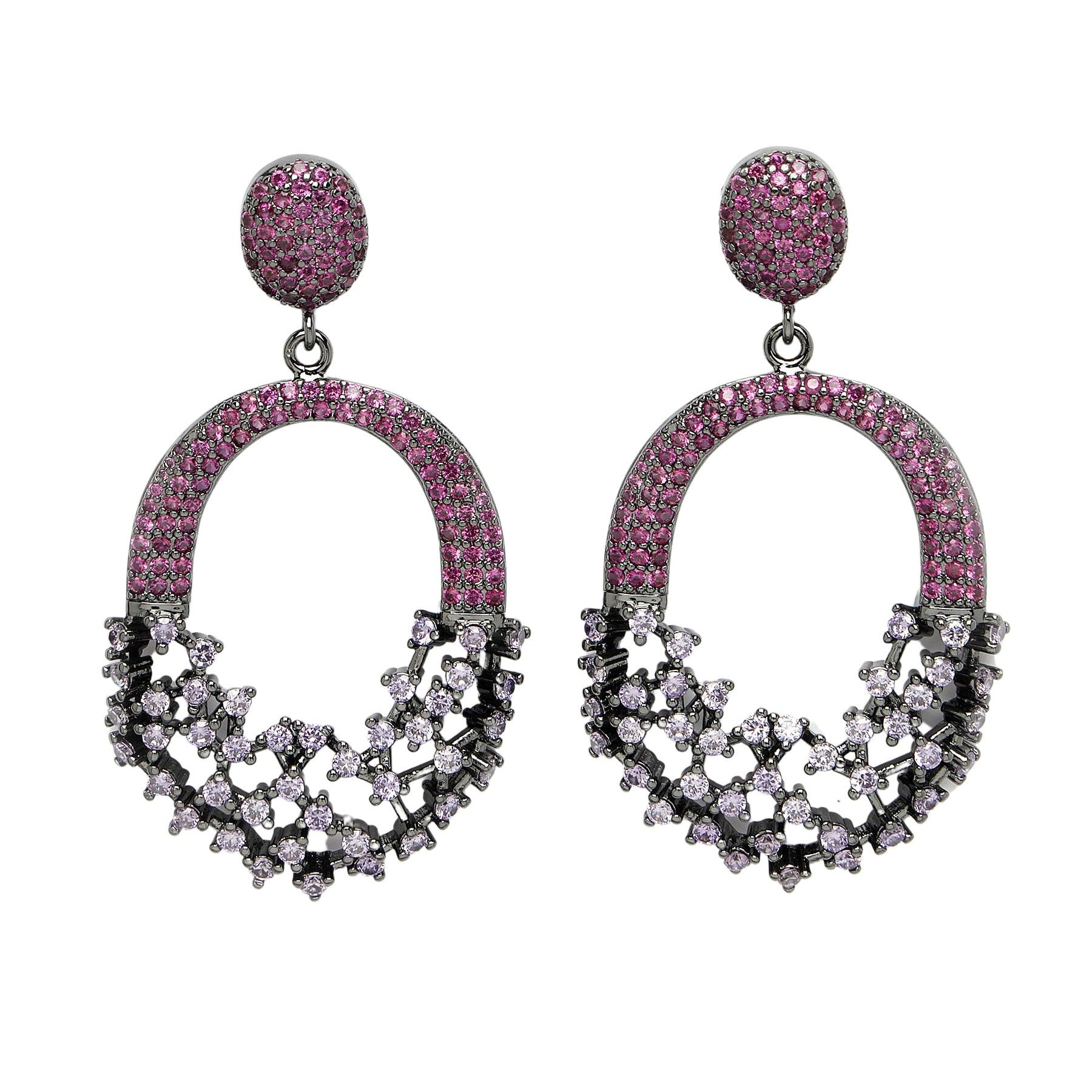Les boucles d'oreilles en zircone rose ajourée scintillante sont un accessoire éblouissant et sophistiqué qui apporte une touche de glamour à toutes vos tenues. Les pierres de zircone rouge vif captent la lumière à chaque mouvement, ajoutant un éclat envoûtant à votre look. Qu'elles soient portées avec une robe de soirée élégante pour un événement spécial ou avec une tenue décontractée pour une sortie entre amis, ces boucles d'oreilles ne manqueront pas de faire sensation. Dimensions : 3,4 cm x 6,0 cm | Placage : Rhodium | Fermoir : Tige et ardillon
