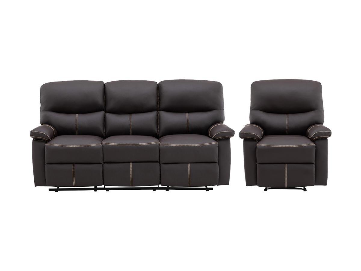 Vente-unique, Canapé 3 places et un fauteuil relax en simili marron CANBY
