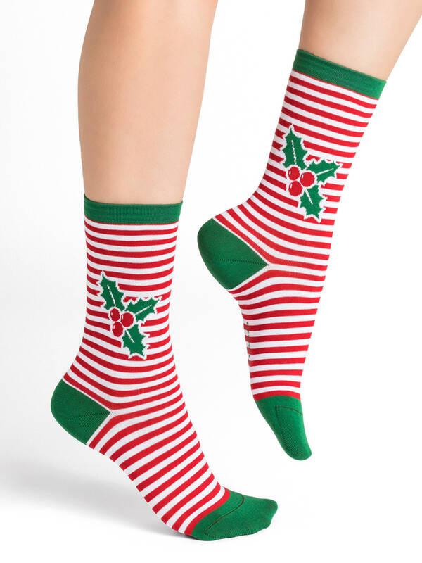 Ces chaussettes festives sont rayées avec style et ornées d'un motif de Noël. Fabriquées à partir d'un mélange de coton léger et doux, elles offrent un confort optimal grâce à des coutures plates aux orteils.
