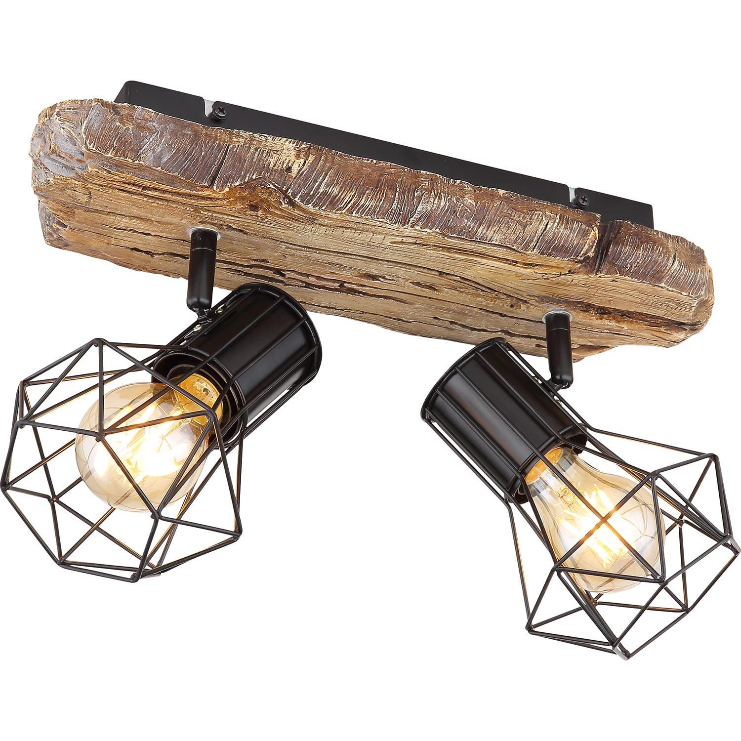 Spot métal noir, plastique aspect bois, métal noir, LxlxH : 385x120x230mm, exclu 2x E27 60W 230V.