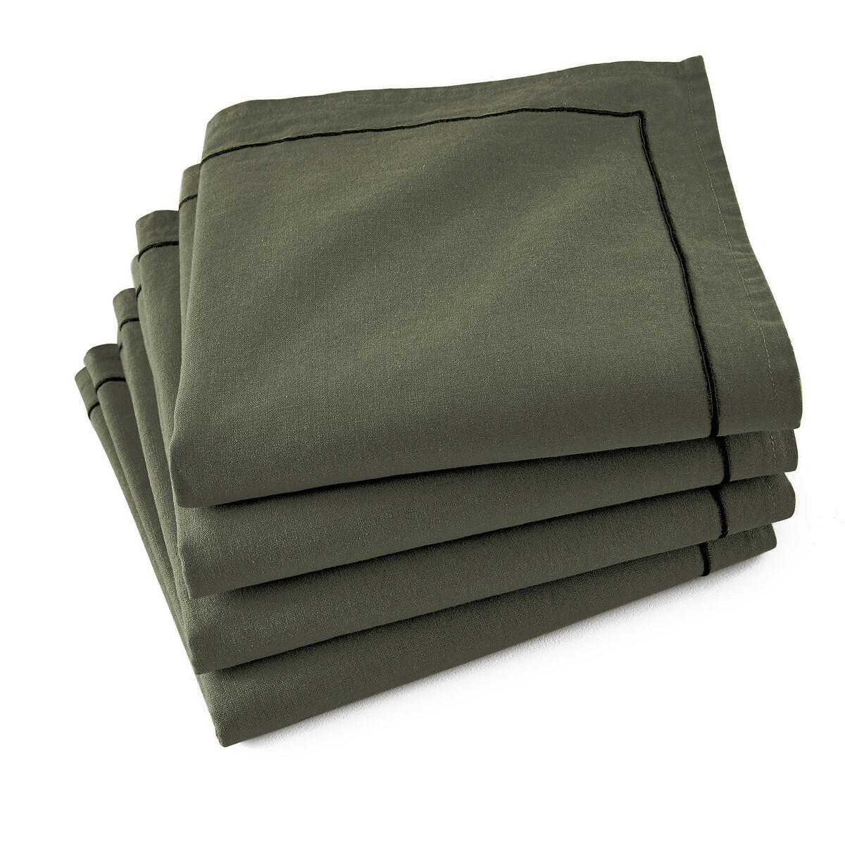 Les 4 serviettes de table Bourdon : élégance et raffinement d'une toile coton lin ornée dune finition bourdon brodé, pour une table chic et stylée à la fois.