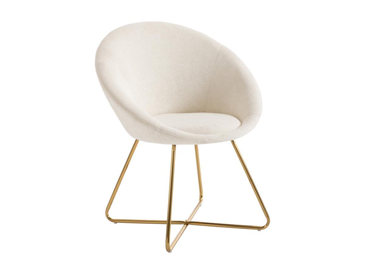Vente-unique, Chaise en tissu bouclette et métal doré - Blanc - BURBAN