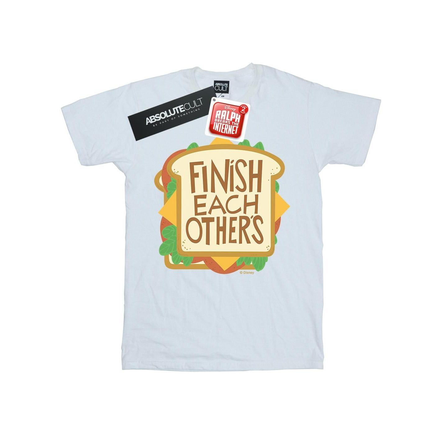Ce t-shirt Wreck-It Ralph présente un graphique d'un sandwich avec la phrase "Finish Each Others" imprimée, inspirée du film "Ralph 2.0". Le design capture un moment mémorable du film, en faisant une pièce amusante et reconnaissable pour les fans.