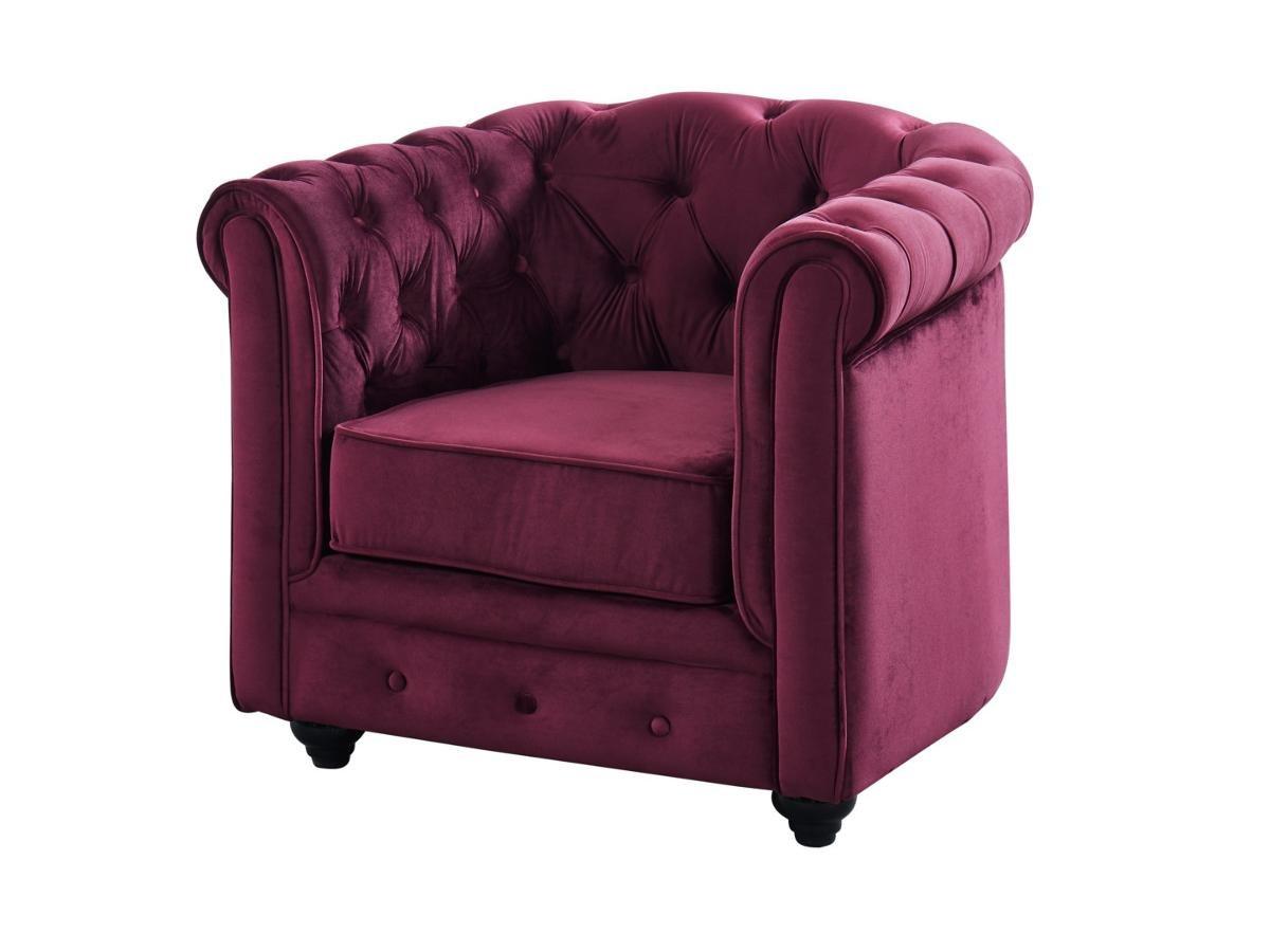 Vente-unique, Fauteuil CHESTERFIELD Velours pourpre