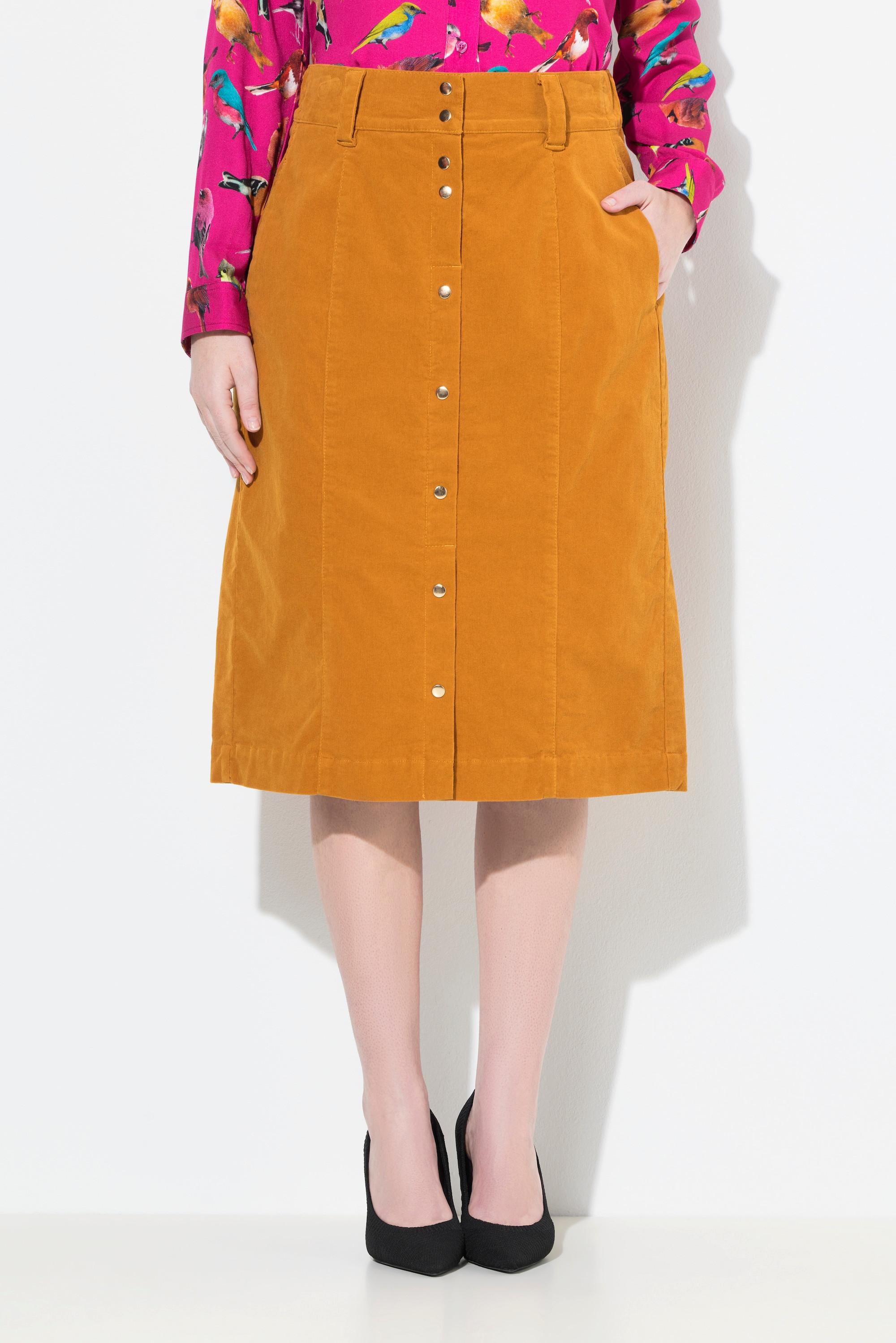 Ulla Popken Jupe en velours côtelé coupe évasée avec patte de boutonnage