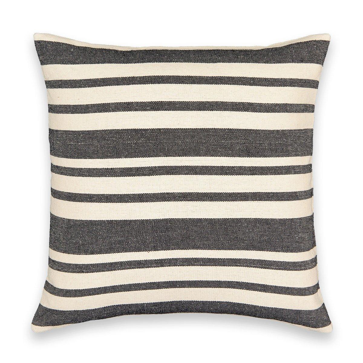 La housse de coussin Minille joue la carte de la rayure noire et écrue pour apporter une touche bohème à votre déco. Son design en fait un accessoire polyvalent pour divers thèmes de décoration.