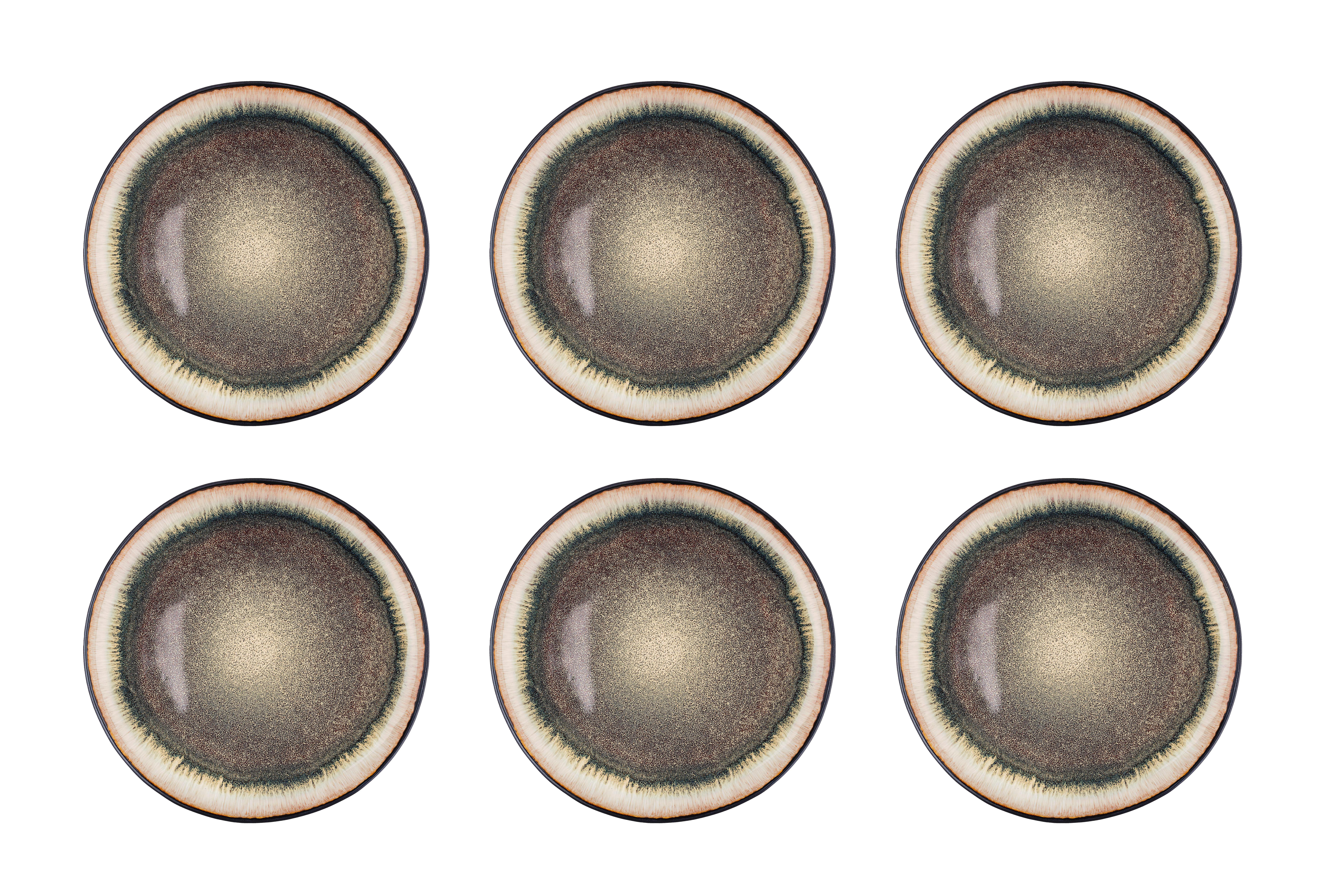 Contient : 6 assiettes Ø26 cm Collection REACTIV / Gamme IRIS / Version WILD BROWN Fabriqué en grès avec vernis réactif Dégradé beige et marron Passe au lave-vaisselle, au micro-ondes et au four (180°C) Dimensions d'une pièce (L x l x H) 26 x 26 x 2,5 cm Livré dans un emballage incassable