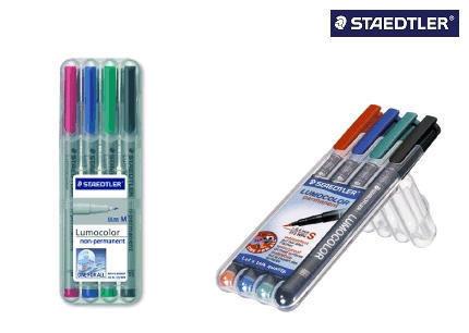 LUMOCOLOR - non-permanent Universalstift Der Universalstift für fast alle Oberflächen von STAEDTLER ist besonders für Overhead-Projektion geeignet und ist feucht abwischbar von Folien! Die non-permanente und geruchsarme Tinte trocknet sekundenschnell und ist auch für Linkshänder geeignet. Wasserlösliche Tinte Sekundenschnell trocken Feucht abwischbar von Folien Airplane safe - automatischer Druckausgleich verhindert das Auslaufen des Stiftes im Flugzeug Höchste Farbbrillanz Schaft und Kappe aus PP garantieren lange Lebensdauer Lichtbeständig