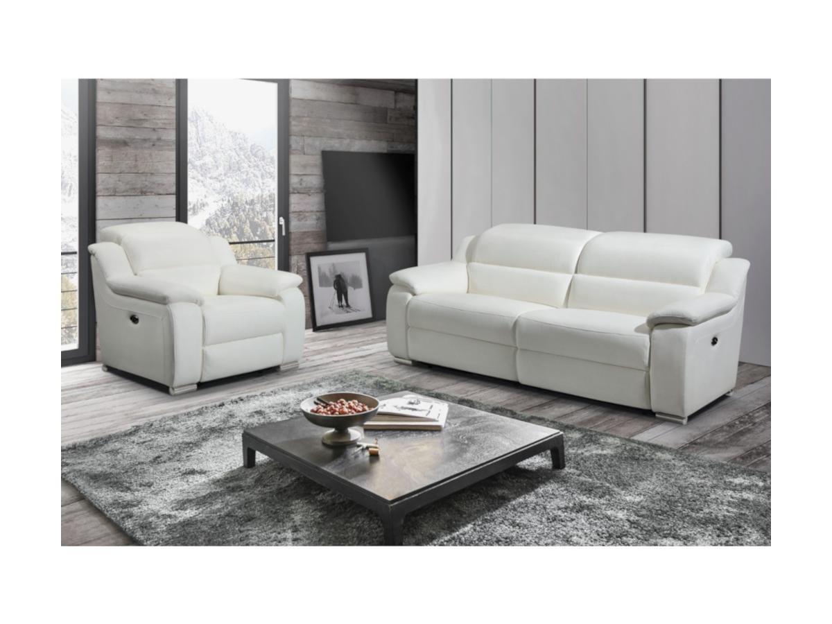 Vente-unique, Canapé 3 places fauteuil relax électrique en cuir ARENA III Ivoire