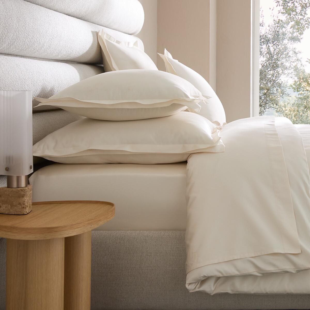 Le satin de coton Galor allie élégance intemporelle et confort. Confectionné au Portugal, il offre un brillant sobre et discret. Le tissage très dense conserve toute sa résistance au cours du temps.