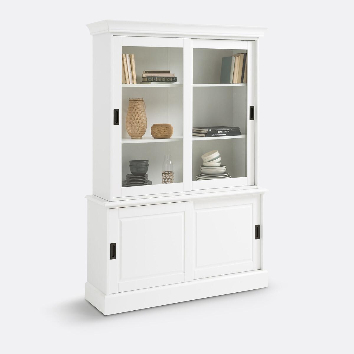 Buffet-vaisselier 4 portes. Pratique, robuste et élégant, le buffet-vaisselier en pin massif se propose pour exposer linge de maison, livres, objets ou vaisselle !Description