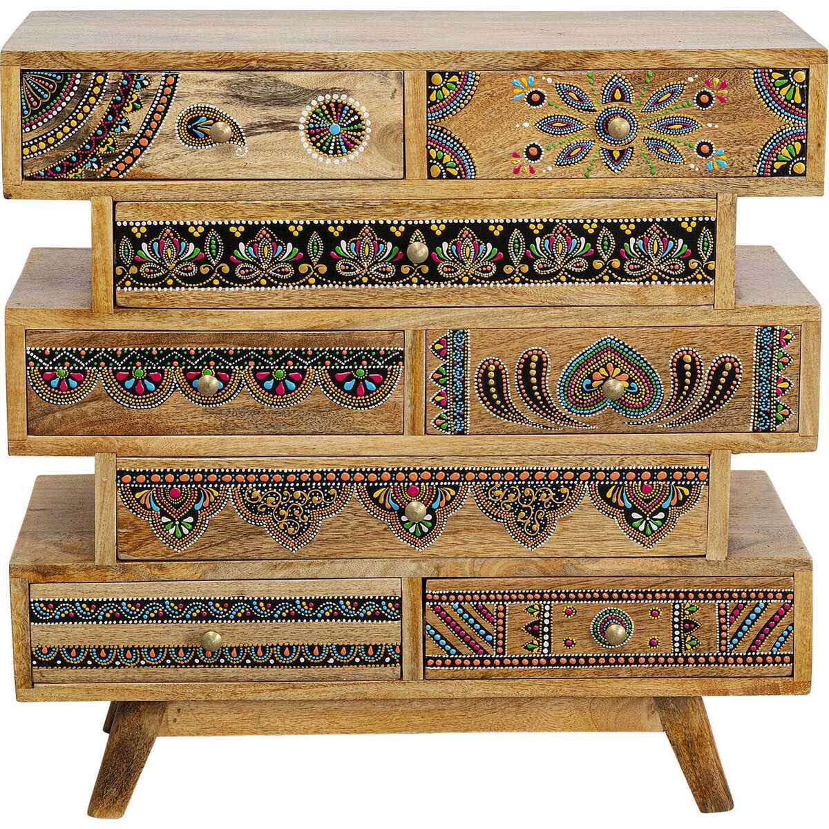 Information produit façade : manguier massif laqué, panneau arrière : panneau de fibres de densité moyenne laqué, façade : panneau de fibres de densité moyenne laqué, poignées : acier laqué laiton, capacité de charge max. 40 kg, fait main, chaque pièce est unique, monté, peint à la main