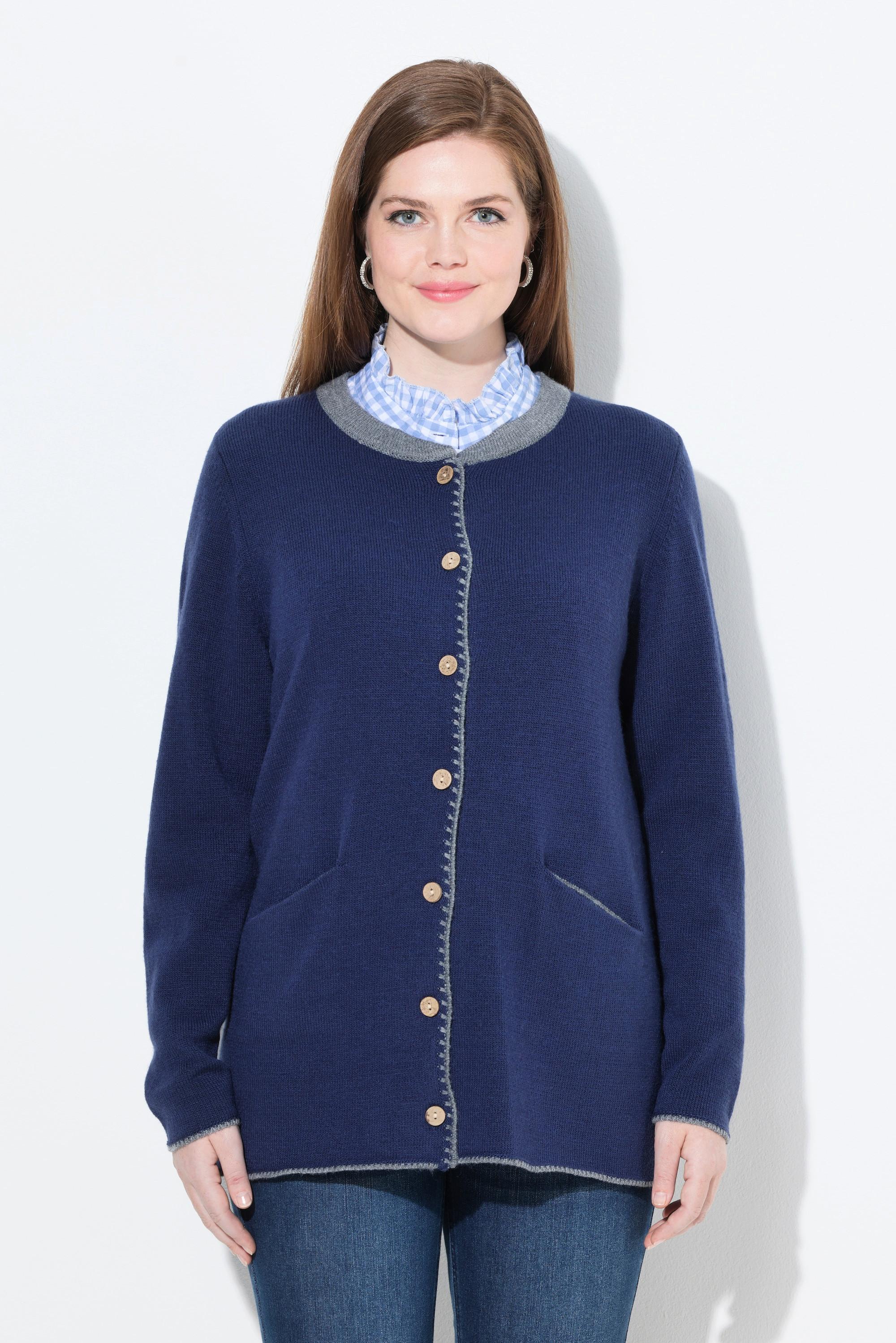 Ulla Popken Cardigan Long Broderie Cerf Coupe Évasée Col Rond