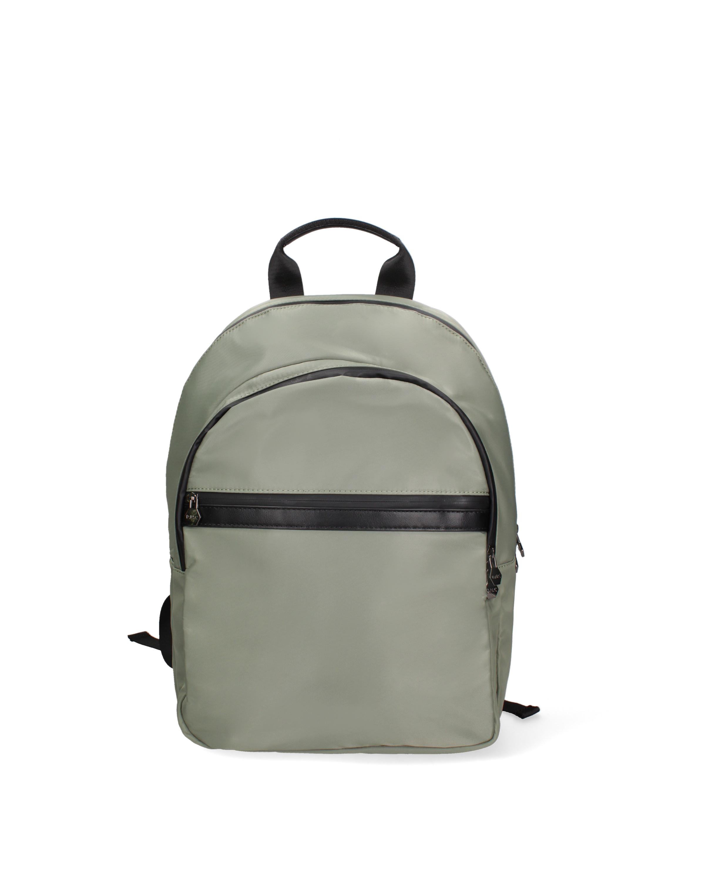 Sac à dos pour femme. La fermeture est avec zip. Les poches intérieures sont une avec fermeture éclair et une ouverte. Il y a deux poches extérieures à l'avant avec fermetures éclair. La bandoulière est manquante. Le manche est en résine. Il y a un compartiment interne. Le matériau extérieur est du cuir écologique. À l'intérieur, il est doublé de polyester. Mesures : 24,5x42x12 cm. Produit de mode