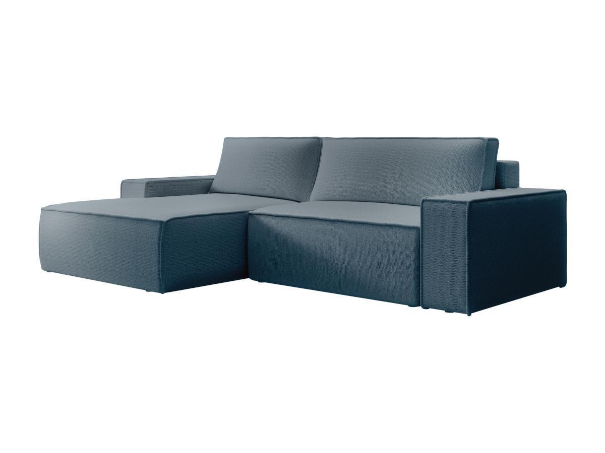 Vente-unique, Canapé d'angle gauche convertible en tissu texturé bleu AMELIA