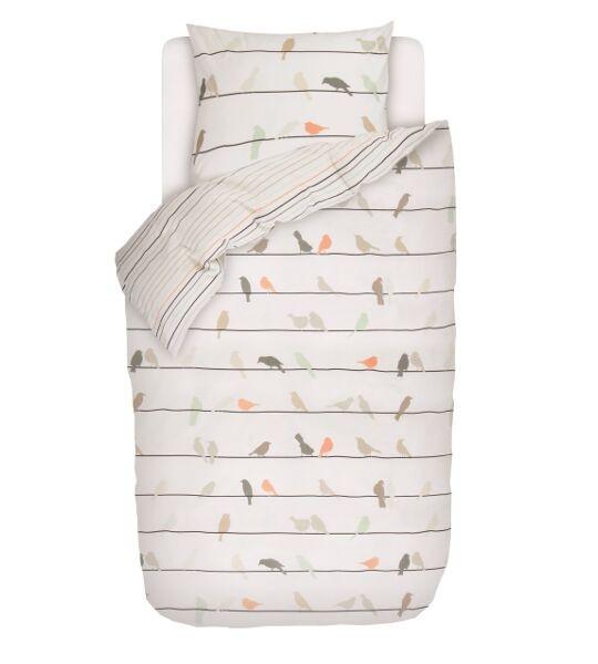 Le set de linge de lit Birdies associe des oiseaux joyeux à des couleurs délicates comme le rose pêche et le bleu clair : la combinaison idéale pour une chambre à la fois moderne et romantique. Le dos est d'un blanc éclatant avec des lignes colorées. Le linge de lit est composé à 100% de satin de coton, un tissu doux et aéré.